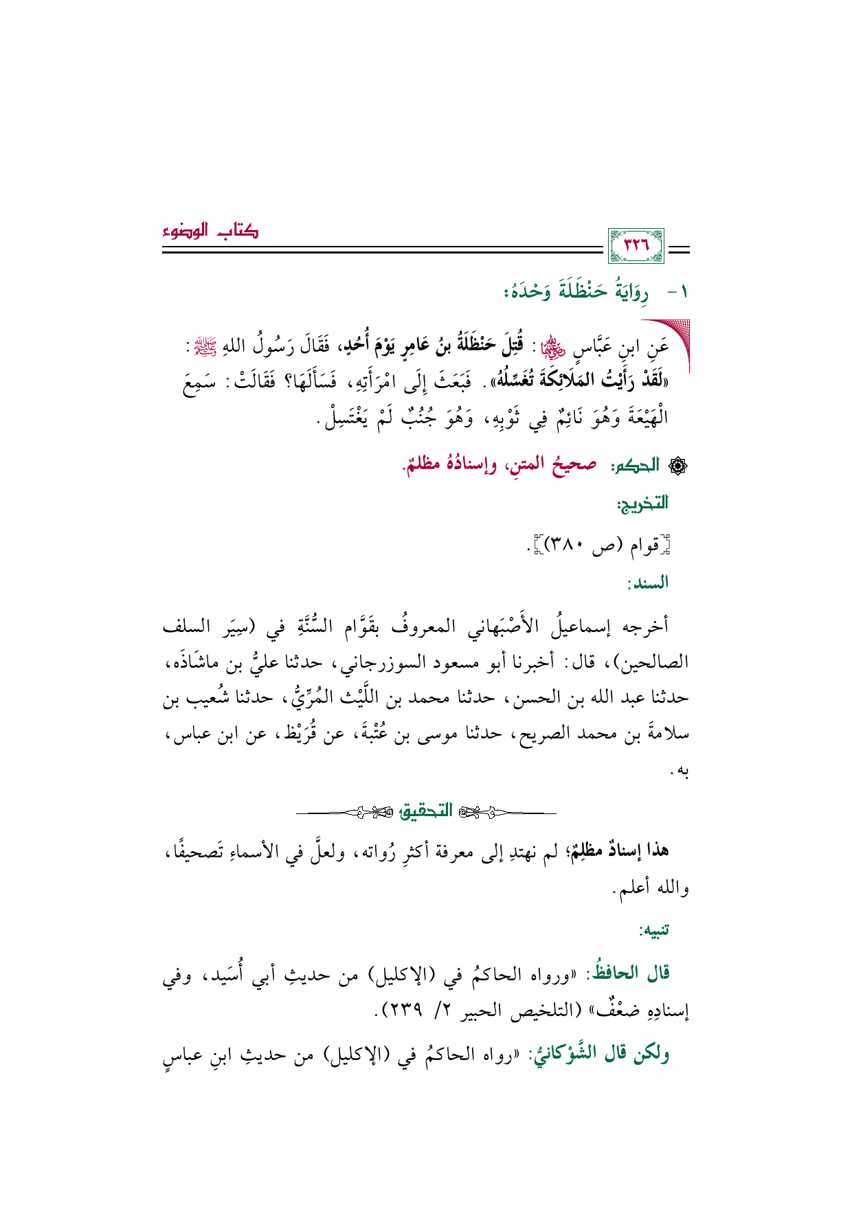 أخرجه إسماعيلُ الأَصْبَهاني المعروفُ بقَوَّام السُّنَّةِ في (سِيَر السلف الصالحين)، قال: أخبرنا أبو مسعود السوزرجاني، حدثنا عليُّ بن ماشَاذَه، حدثنا عبد الله بن الحسن، حدثنا محمد بن اللَّيْث المُرِّيُّ، حدثنا شُعيب بن سلامةَ بن محمد الصريح، حدثنا موسى بن عُتْبةَ، عن قُرَيْظ، عن ابن عباس، به.