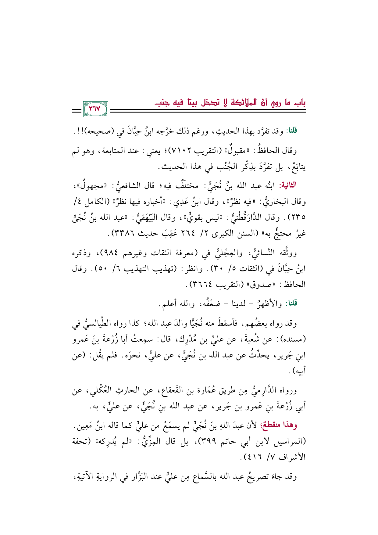 وقد رواه بعضُهم، فأسقطَ منه نُجَيًّا والدَ عبد الله؛ كذا رواه الطَّيالسيُّ في (مسنده): عن شُعبةَ، عن عليِّ بن مُدْرِك، قال: سمِعتُ أبا زُرْعةَ بنَ عَمرو بنِ جَرير، يحدِّثُ عن عبد الله بن نُجَيٍّ، عن عليٍّ، نحوَه. فلم يقُل: (عن أبيه).