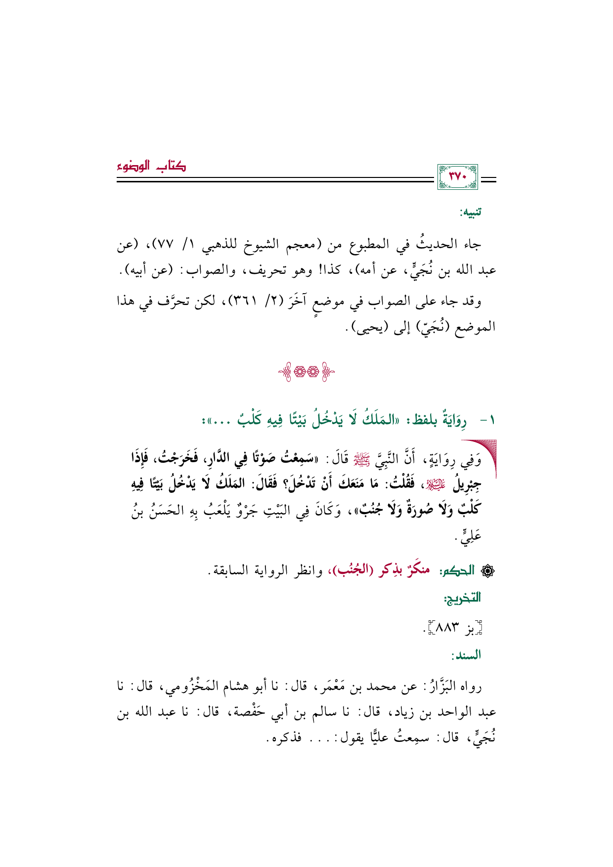 وقد جاء على الصواب في موضعٍ آخَرَ (٢/ ٣٦١)، لكن تحرَّف في هذا الموضع (نُجَيّ) إلى (يحيى).