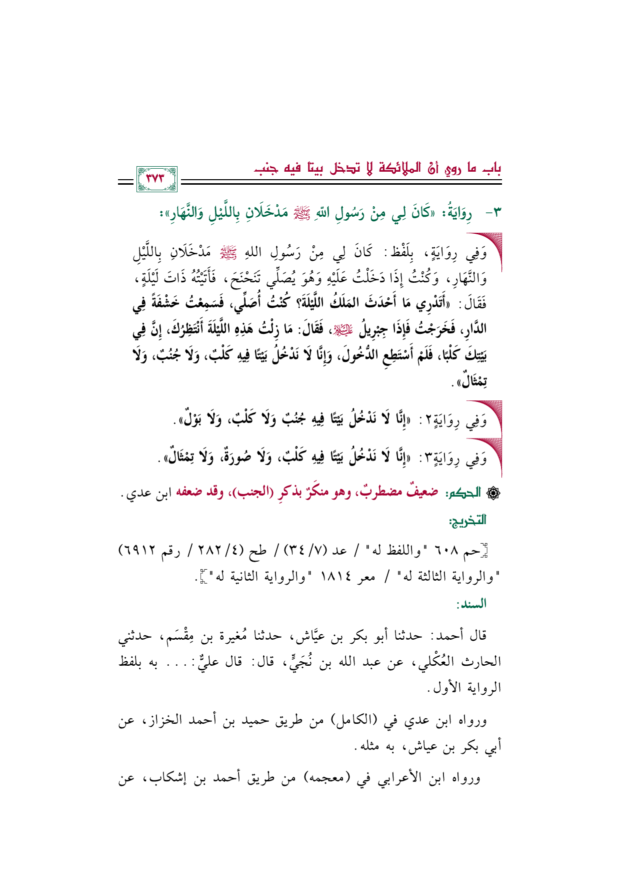 [حم ٦٠٨ (واللفظ له) / عد (٧/ ٣٤) / طح (٤/ ٢٨٢/ رقم ٦٩١٢) "والرواية الثالثة له" / معر ١٨١٤ "والرواية الثانية له"].