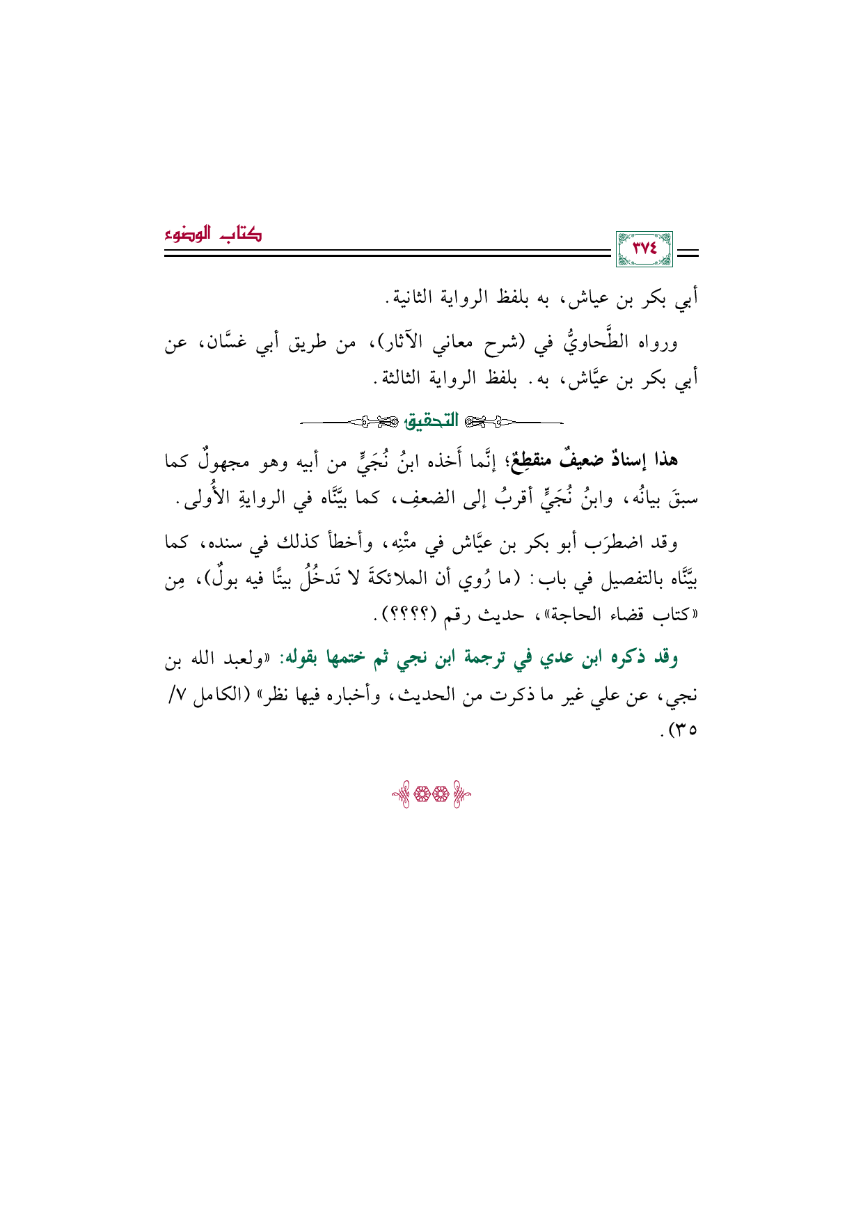 وقد اضطرَب أبو بكر بن عيَّاش في متْنِه، وأخطأ كذلك في سنده، كما بيَّنَّاه بالتفصيل في باب: (ما رُوي أن الملائكةَ لا تَدخُلُ بيتًا فيه بولٌ)، مِن "كتاب قضاء الحاجة"، حديث رقم (؟ ؟ ؟ ؟ ).