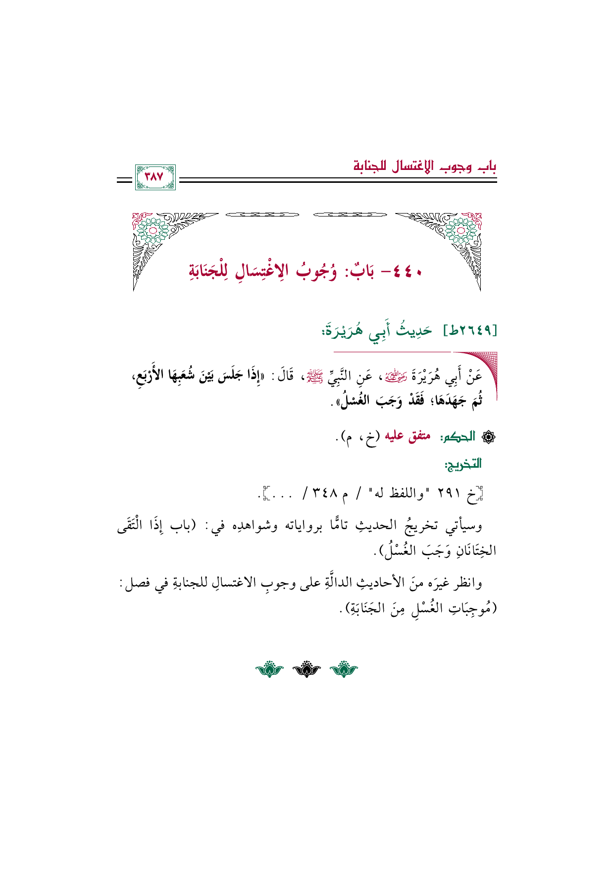٤٤٠ - بَابٌ: وُجُوبُ الِاغْتِسَالِ لِلْجَنَابَةِ