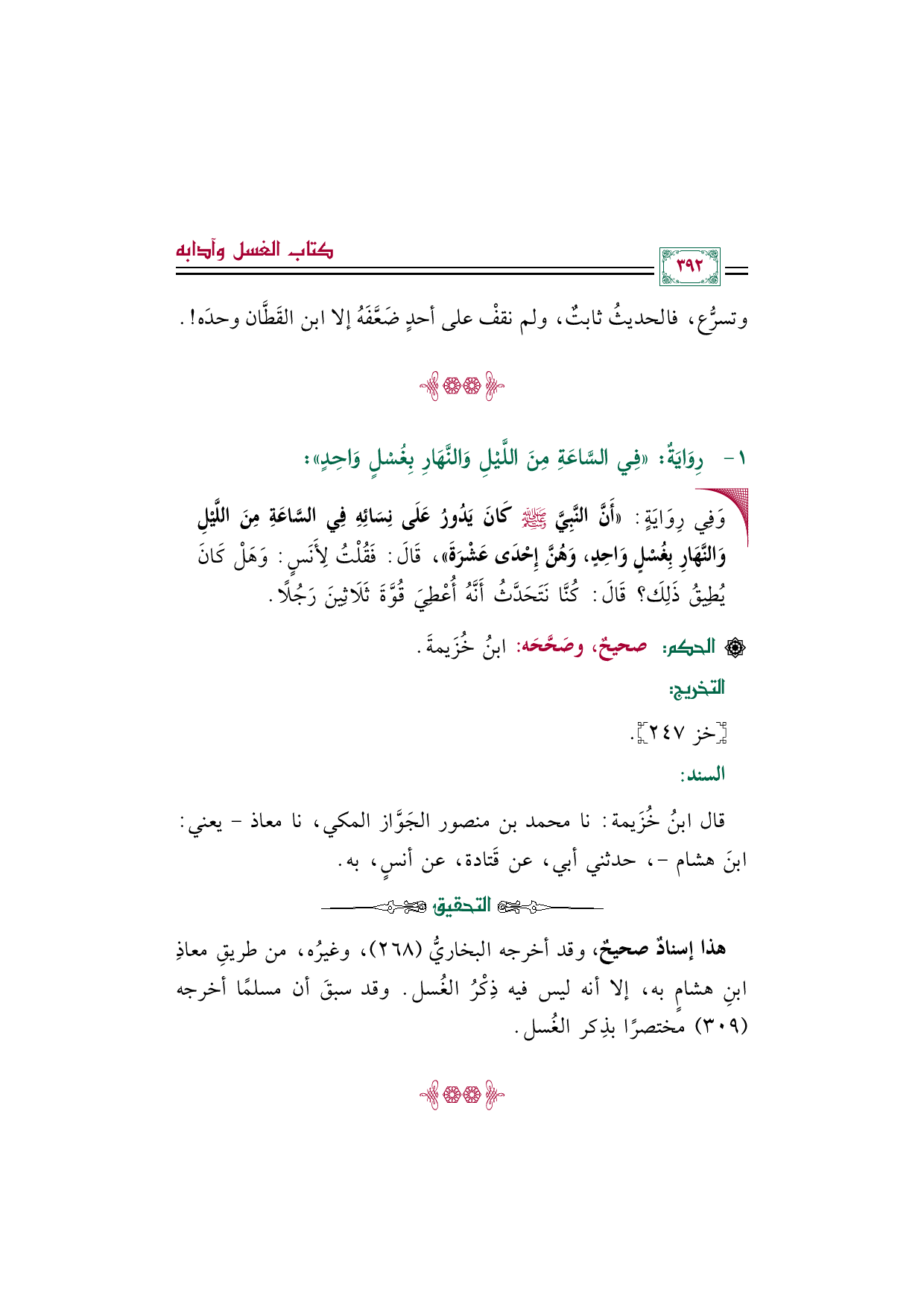 قال ابنُ خُزَيمة: نا محمد بن منصور الجَوَّاز المكي، نا معاذ -يعني: ابنَ هشام-، حدثني أبي، عن قَتادة، عن أنسٍ، به.