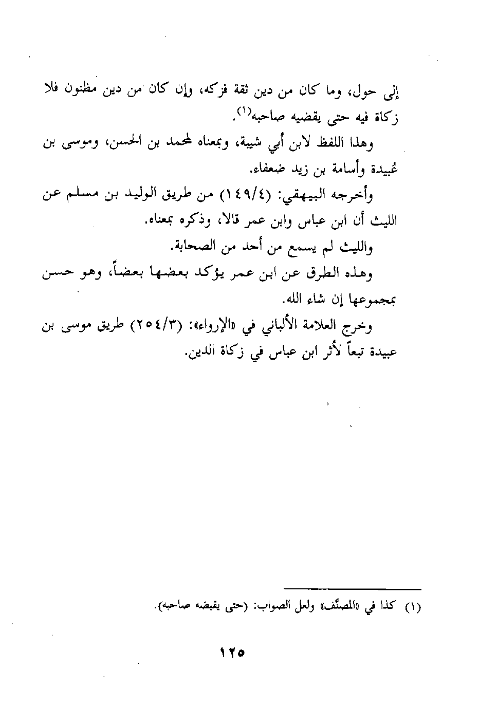وخرج العلامة الألباني في "الإرواء": (3/254) طريق موسى بن عبيدة تبعاً لأثر ابن عباس في زكاة الدين.