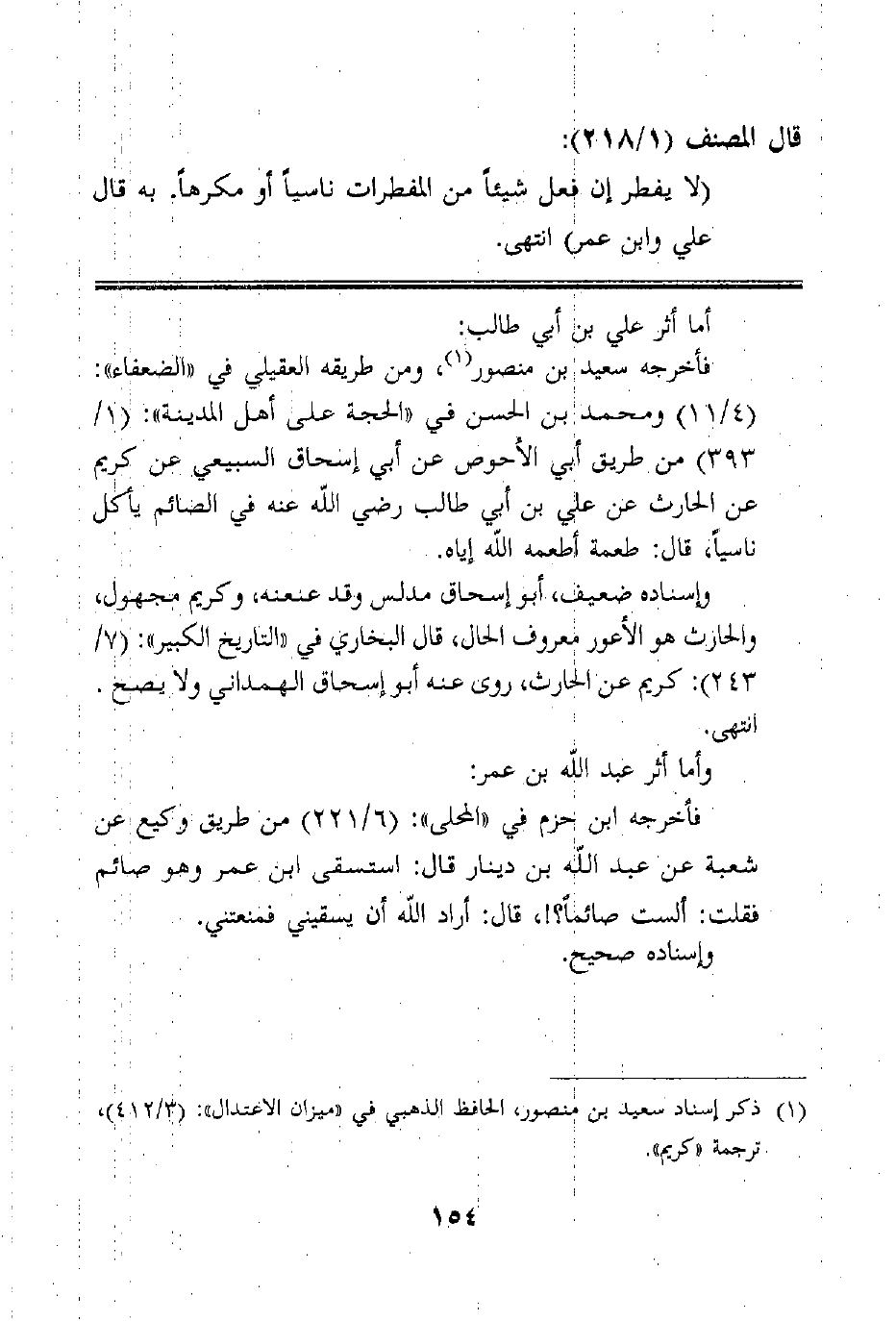فأخرجه سعيد بن منصور، ومن طريقه العقيلي في "الضعفاء": (4/11) ومحمد بن الحسن في "الحجة على أهل المدينة": (1/393) من طريق أبي الأحوص عن أبي إسحاق السبيعي عن كريم عن الحارث عن علي بن أبي طالب رضي الله عنه في الصائم يأكل ناسياً، قال: طعمة أطعمه الله إياه.