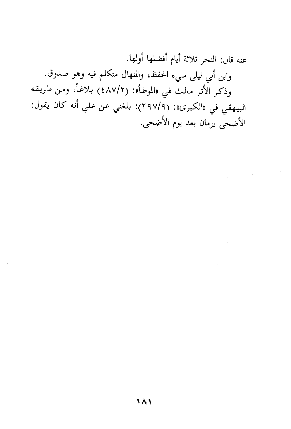 وذكر الأثر مالك في "الموطأ": (2/487) بلاغاً، ومن طريقه البيهقي في "الكبرى": (9/297) : بلغني عن علي أنه كان يقول: الأضحى يومان بعد يوم الأضحى.