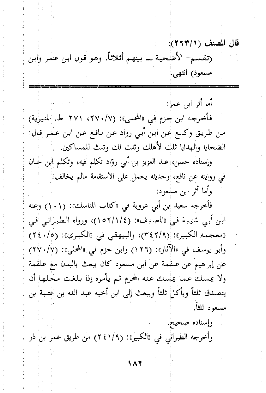 فأخرجه سعيد بن أبي عروبة في "كتاب المناسك": (101) وعنه ابن أبي شيبة في "المصنف": (4/1/152) ، ورواه الطبراني في "معجمه الكبير": (9/342) ، والبيهقي في "الكبرى": (5/240) وأبو يوسف في "الآثار": (126) وابن حزم في "المحلى": (7/270) عن إبراهيم عن علقمة عن ابن مسعود رضي الله عنه كان يبعث بالبدن مع علقمة ولا يمسك عما يمسك عنه المحرم ثم يأمره إذا بلغت محلها أن يتصدق ثلثاً ويأكل ثلثاً ويبعث إلى ابن أخيه عبد الله بن عتيبة بن مسعود ثلثاً.