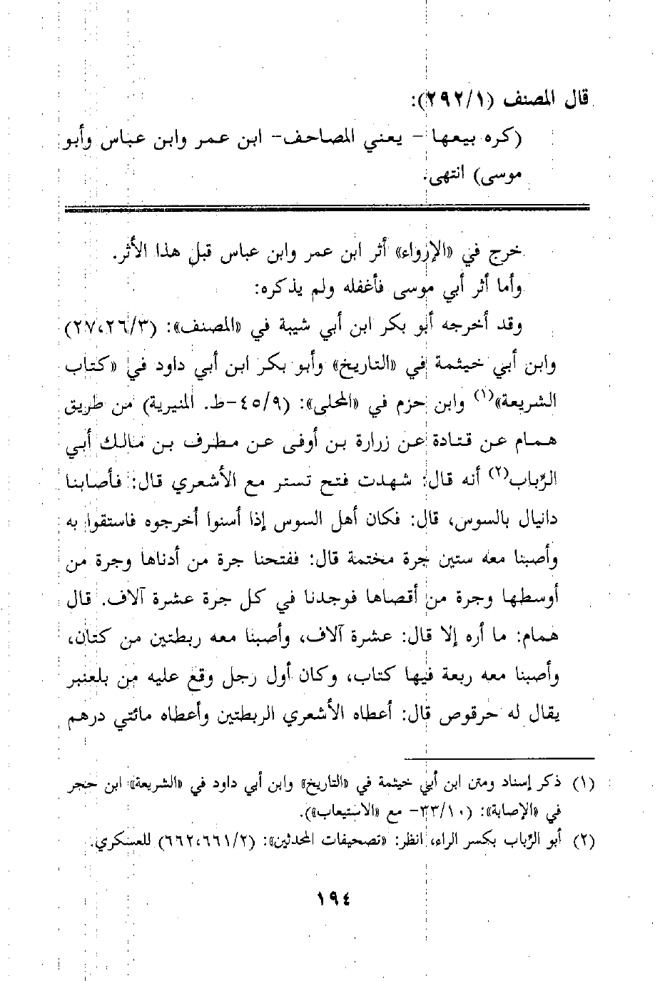 قال المصنف (1/292) :