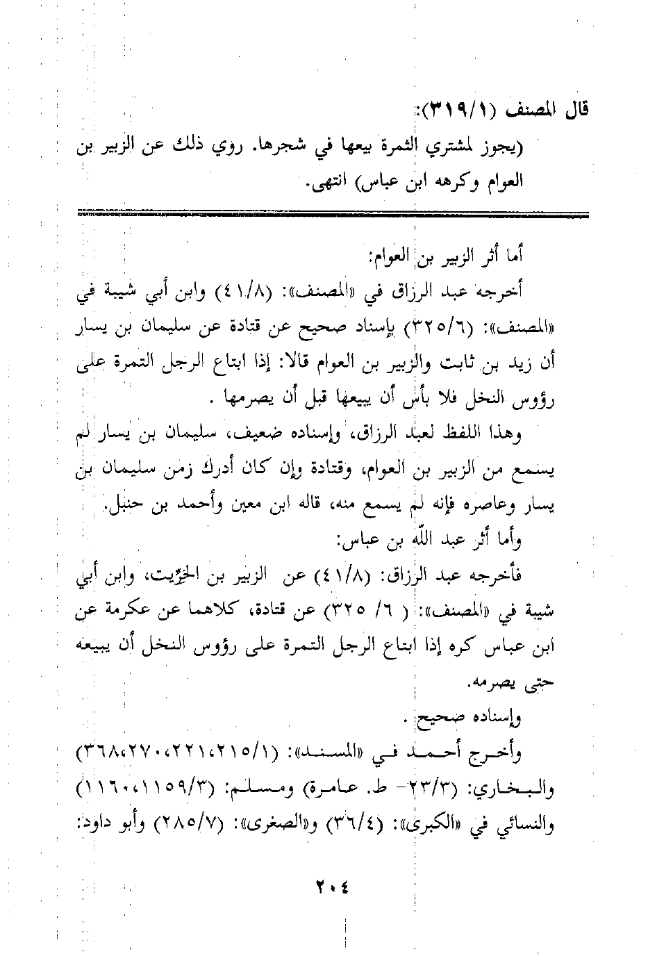 (يجوز لمشتري الثمرة بيعها في شجرها. روي ذلك عن الزبير بن العوام وكرهه ابن عباس) انتهى.