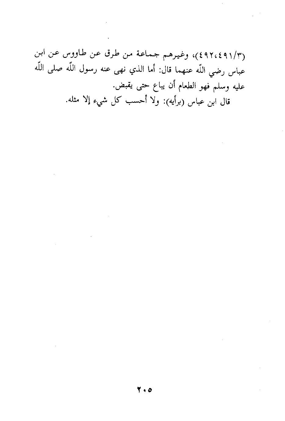 (3/491، 492) ، وغيرهم جماعة من طرق عن طاووس عن ابن عباس رضي الله عنهما قال: أما الذي نهى عنه رسول الله صلى الله عليه وسلم فهو الطعام أن يباع حتى يقبض.