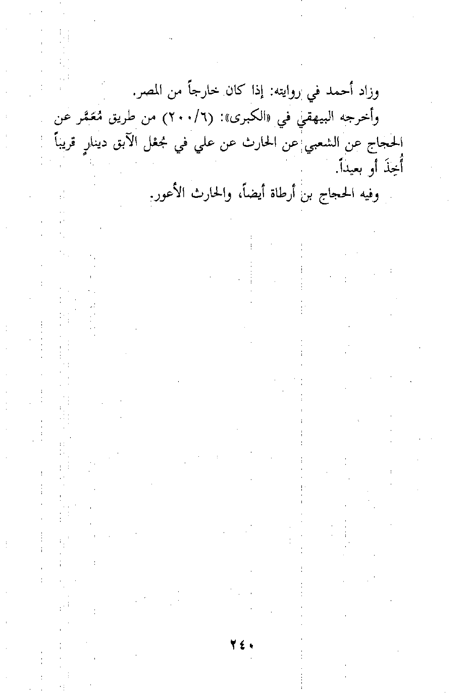 وأخرجه البيهقي في "الكبرى": (6/200) من طريق مُعَمَّر عن الحجاج عن الشعبي عن الحارث عن علي في جُعْل الآبق ديناراً قريباً أُخِذَ أو بعيداً.