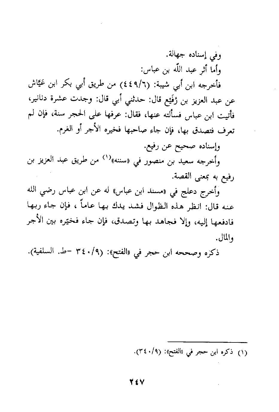 فأخرجه ابن أبي شيبة: (6/449) من طريق أبي بكر ابن عَيَّاش عن عبد العزيز بن رُفَيْع قال: حدثني أبي قال: وجدت عشرة دنانير، فأتيت ابن عباس فسألته عنها، فقال: عرفها على الحجر سنة، فإن لم تعرف فتصدق بها، فإن جاء صاحبها فخيره الأجر أو الغرم.