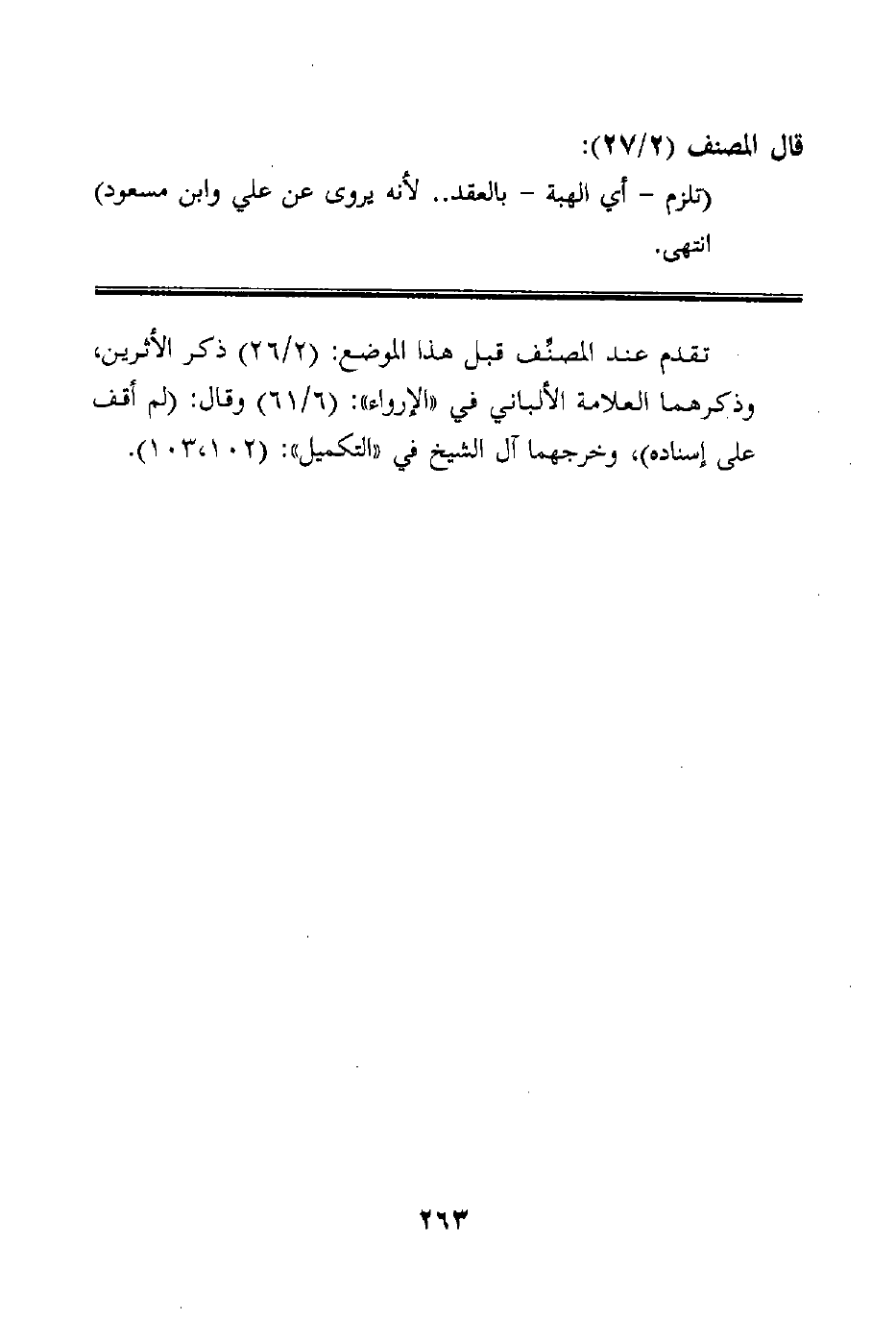 تقدم عند المصنِّف قبل هذا الموضع: (2/26) ذكر الأثرين، وذكرهما العلامة الألباني في "الإرواء": (6/61) وقال: (لم أقف على إسناده) ، وخرجهما آل الشيخ في "التكميل": (102، 103) .