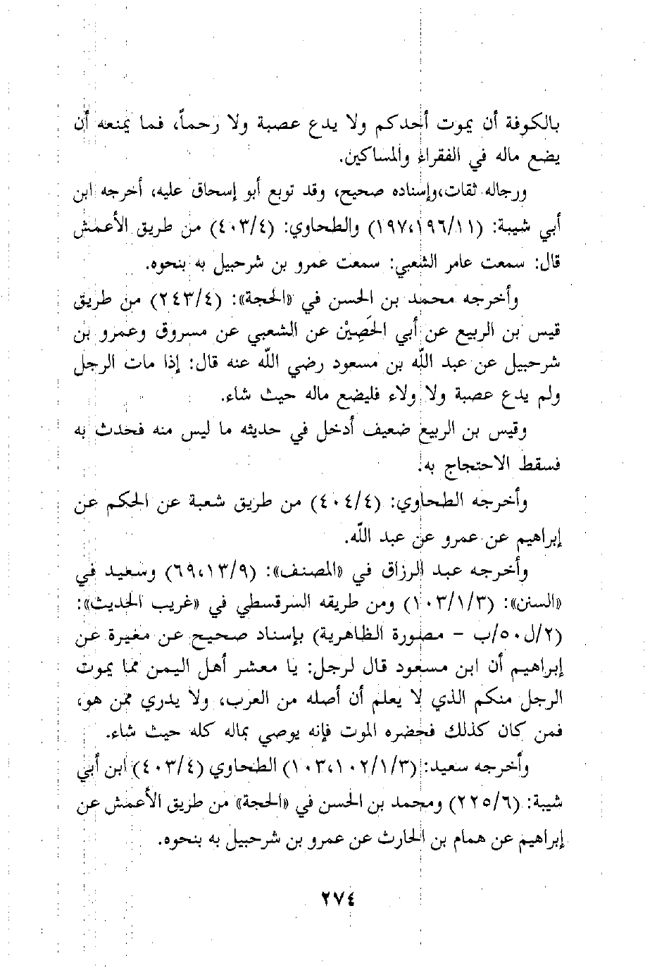 وأخرجه محمد بن الحسن في "الحجة": (4/243) من طريق قيس بن الربيع عن أبي الحَصِيْن عن الشعبي عن مسروق وعمرو بن شرحبيل عن عبد الله بن مسعود رضي الله عنه قال: إذا مات الرجل ولم يدع عصبة ولا ولاء فليضع ماله حيث شاء.