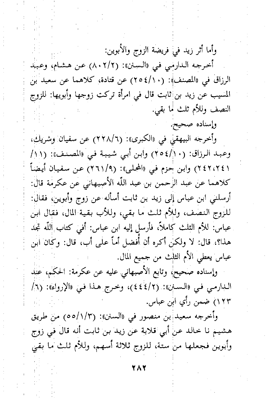 وأخرجه البيهقي في "الكبرى": (6/228) عن سفيان وشريك، وعبد الرزاق: (10/254) وابن أبي شيبة في "المصنف": (11/241، 242) وابن حزم في "المحلى": (9/261) عن سفيان أيضاً كلاهما عن عبد الرحمن بن عبد الله الأصبهاني عن عكرمة قال: أرسلني ابن عباس إلى زيد بن ثابت أسأله عن زوج وأبوين، فقال: للزوج النصف، وللأم ثلث ما بقي، وللأب بقية المال، فقال ابن عباس: للأم الثلث كاملاً، فأرسل إليه ابن عباس: أفي كتاب الله تجد هذا؟، قال: لا ولكن أكره أن أُفضل أماً على أب، قال: وكان ابن عباس يعطي الأم الثلث من جميع المال.