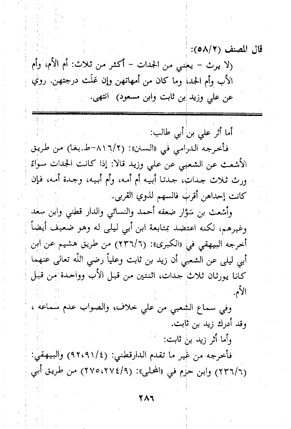 وتابعه عليه ابن أبي ليلى وهو ضعيف أيضاً أخرجه البيهقي في "الكبرى": (6/236) من طريق هشيم عن ابن أبي ليلى عن الشعبي أن زيد بن ثابت وعلياً رضي الله تعالى عنهما كانا يورثان ثلاث جدات، اثنتين من قبل الأب وواحدة من قبل الأم.