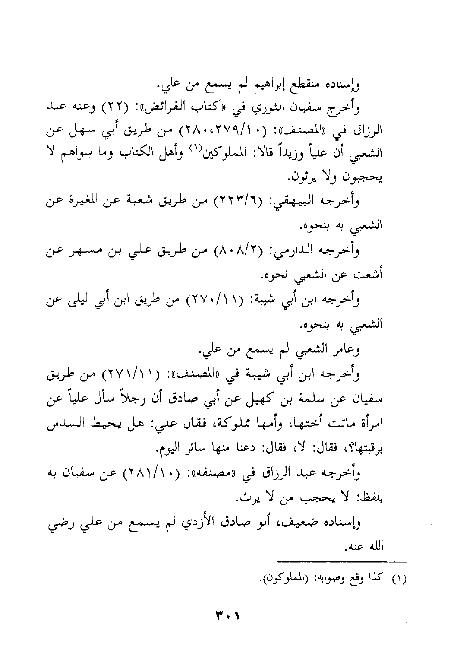 وأخرج سفيان الثوري في "كتاب الفرائض": (22) وعنه عبد الرزاق في "المصنف": (10/279، 280) من طريق أبي سهل عن الشعبي أن علياً وزيداً قالا: المملوكين وأهل الكتاب وما سواهم لا يحجبون ولا يرثون.