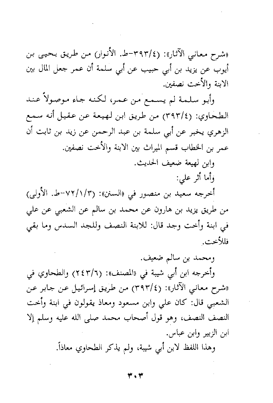 وأبو سلمة لم يسمع من عمر، لكنه جاء موصولاً من طريق ضعيف عند الطحاوي: (4/393) من طريق ابن لهيعة عن عقيل أنه سمع الزهري يخبر عن أبي سلمة بن عبد الرحمن عن زيد بن ثابت أن عمر بن الخطاب قسم الميراث بين الابنة والأخت نصفين.