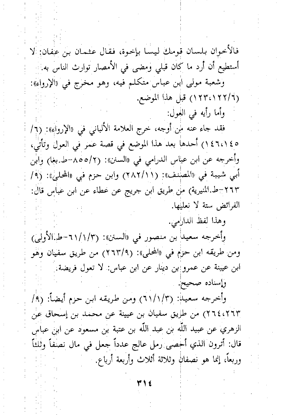 وأخرجه سعيد: (3/1/61) ومن طريقه ابن حزم أيضاً: (9/263، 264) من طريق سفيان بن عيينة عن محمد بن إسحاق عن الزهري عن عبيد الله بن عبد الله بن عتبة بن مسعود عن ابن عباس قال: أترون الذي أحصى رمل عالج عدداً جعل في مال نصفاً وثلثاً وربعاً، إنما هو نصفان وثلاثة أثلاث وأربعة أرباع.