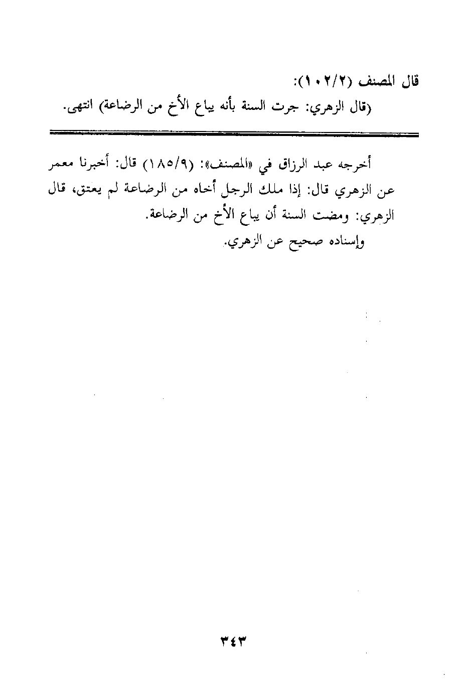 أخرجه عبد الرزاق في "المصنف": (9/185) قال: أخبرنا معمر عن الزهري قال: إذا ملك الرجل أخاه من الرضاعة لم يعتق، قال الزهري: ومضت السنة أن يباع الأخ من الرضاعة.