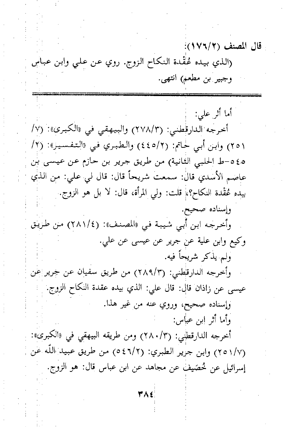 (الذي بيده عُقْدة النكاح الزوج. روي عن علي وابن عباس وجبير بن مطعم) انتهى.