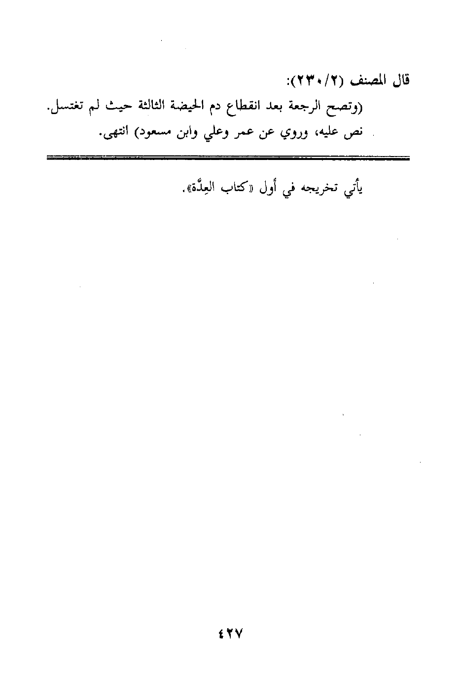 (وتصح الرجعة بعد انقطاع دم الحيضة الثالثة حيث لم تغتسل. نص عليه، وروي عن عمر وعلي وابن مسعود) انتهى.