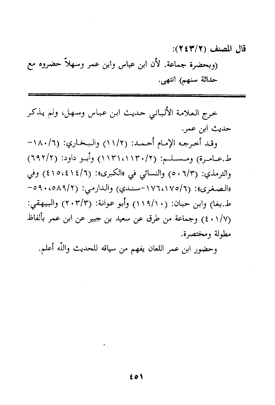 (وبحضرة جماعة. لأن ابن عباس وابن عمر وسهلاً حضروه مع حداثة سنهم) انتهى.