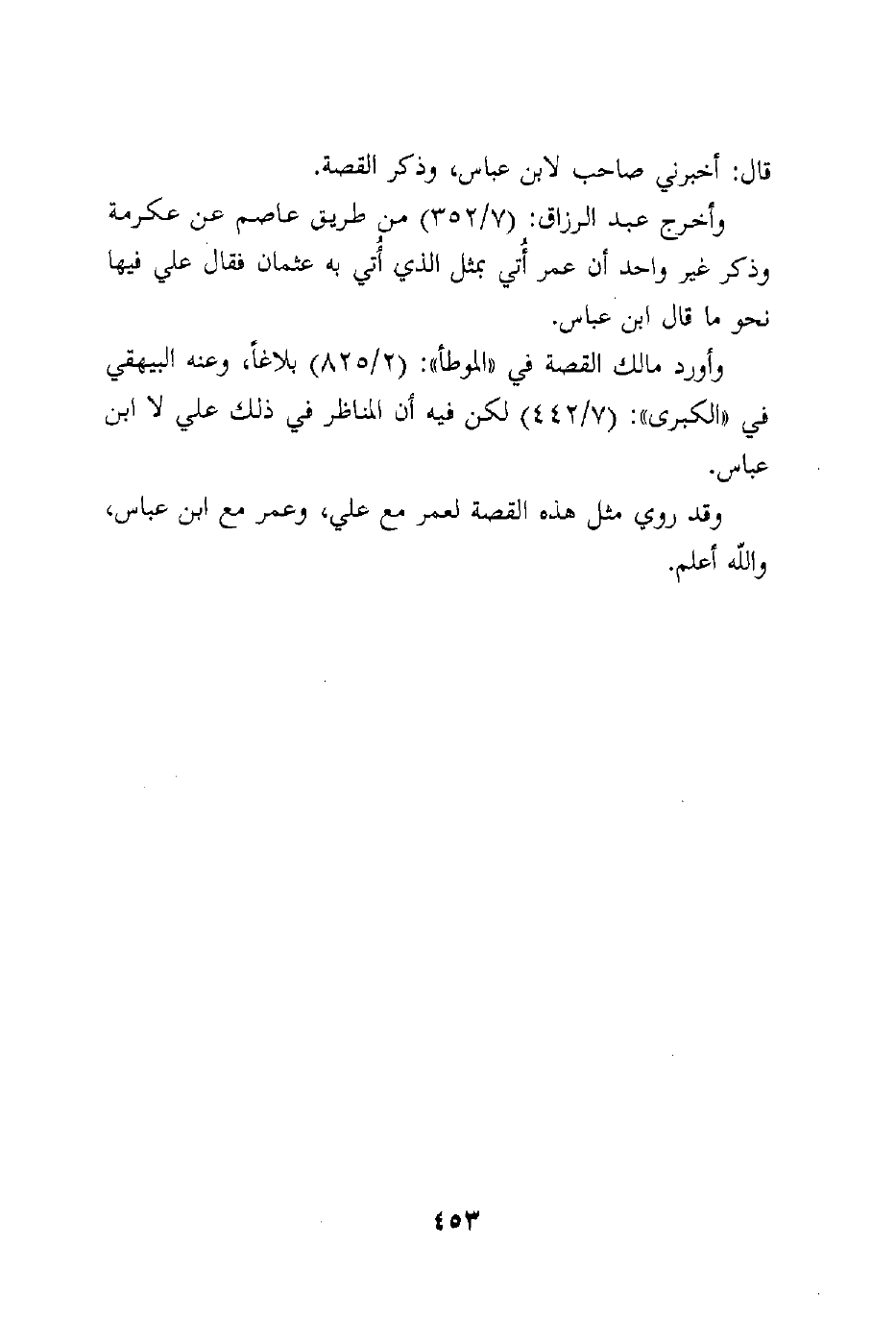 وأخرج عبد الرزاق: (7/352) من طريق عاصم عن عكرمة وذكر غير واحد أن عمر أُتي بمثل الذي أُتي به عثمان فقال علي فيها نحو ما قال ابن عباس.