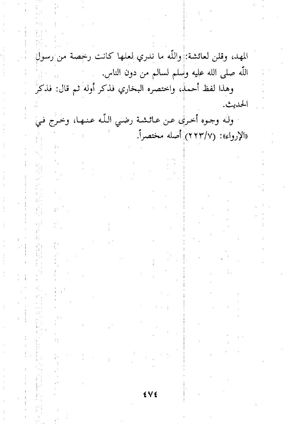 المهد، وقلن لعائشة: والله ما ندري لعلها كانت رخصة من رسول الله صلى الله عليه وسلم لسالم من دون الناس.