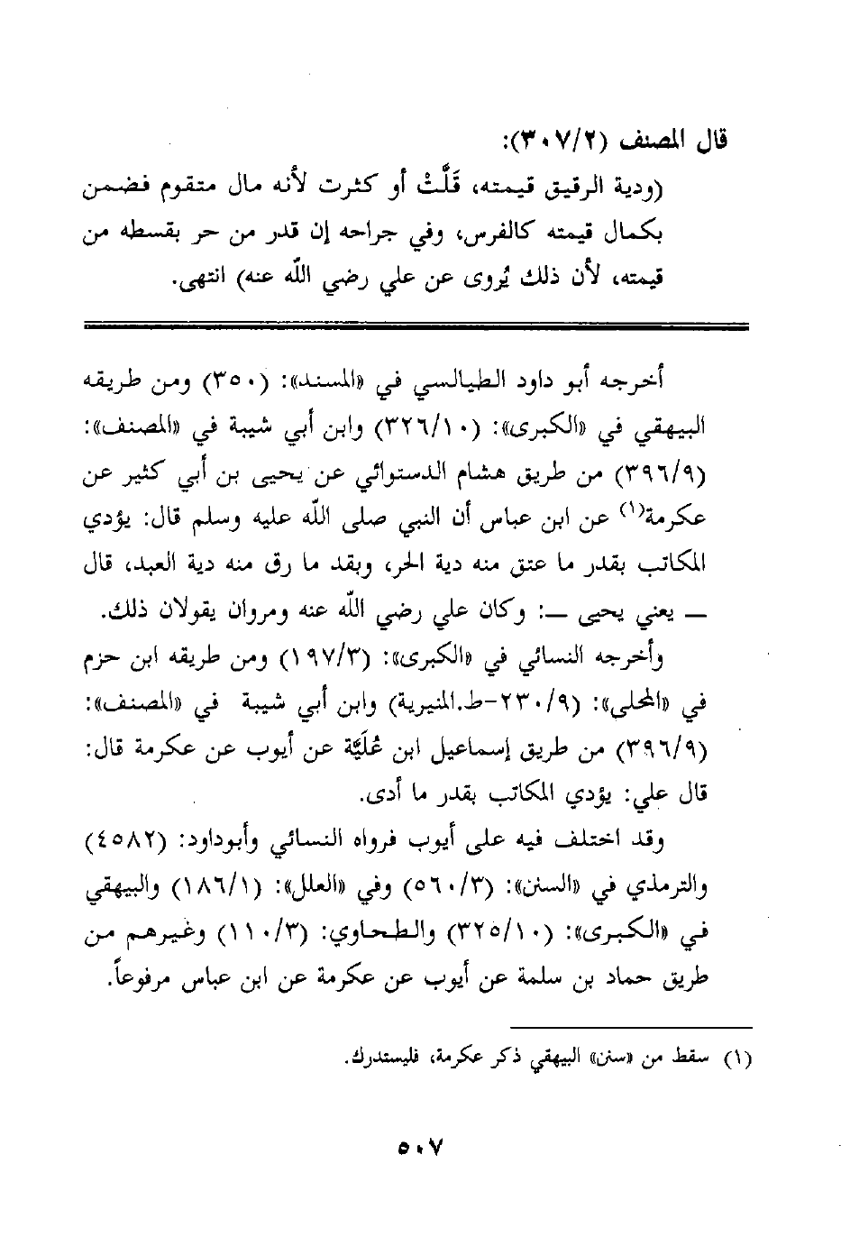 هكذا خرجه العلامة الألباني بمعنى ما أورده المصنّف، وخرجه الشيخ آل الشيخ في "التكميل": (163) بأقرب منه، وأقرب منهما وهو بنحو لفظ المصنّف ما رواه ابن حزم في "المحلى": (10/396) من طريق حماد بن سلمة عن محمد بن إسحاق عن أبي نجيح: أن امرأة قتلت في الحرم، فجعل عثمان ديتها ستة آلاف درهم، وألفين للحرم.