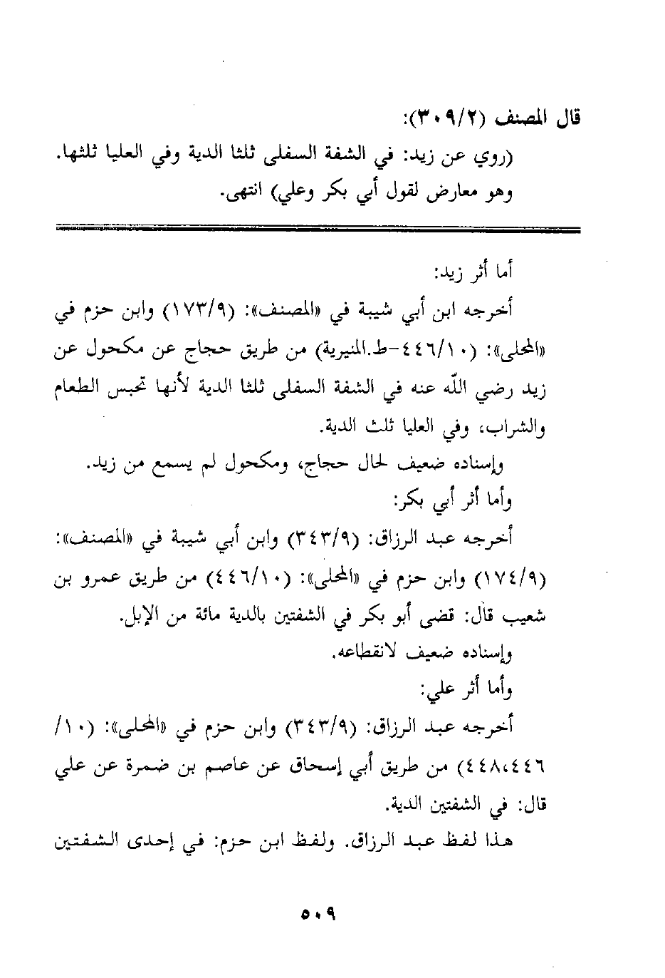 (روي عن زيد: في الشفة السفلى ثلثا الدية وفي العليا ثلثها. وهو معارض لقول أبي بكر وعلي) انتهى.