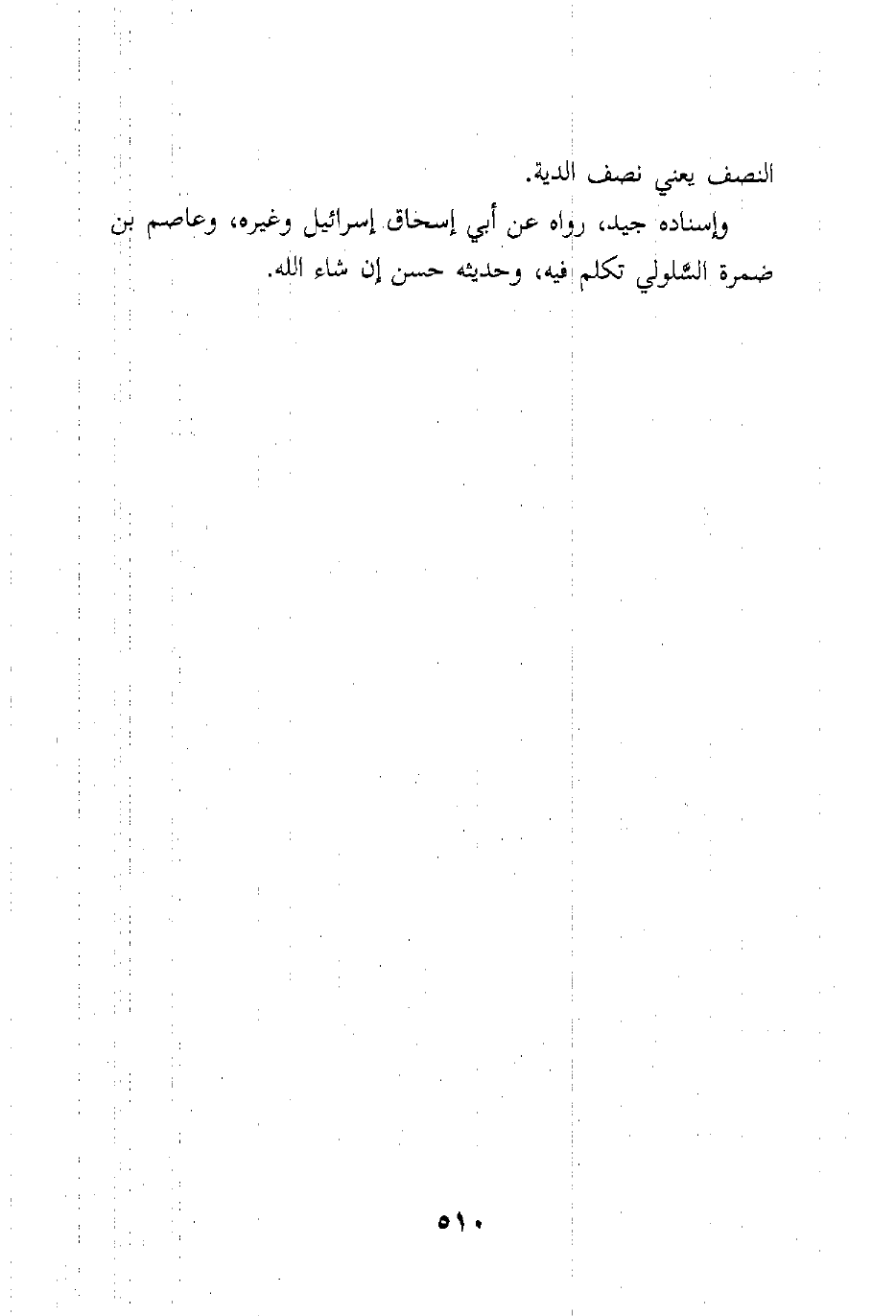 وإسناده جيد، رواه عن أبي إسحاق إسرائيل وغيره، وعاصم بن ضمرة السَّلولي تكلم فيه، وحديثه حسن إن شاء الله.