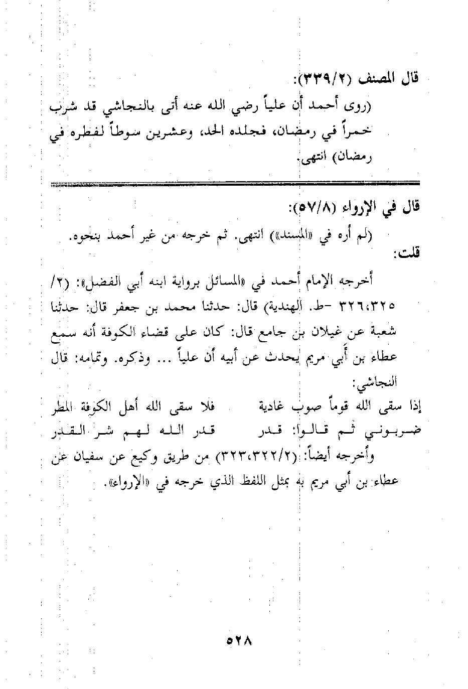 (روى أحمد أن علياً رضي الله عنه أتى بالنجاشي قد شرب خمراً في رمضان، فجلده الحد، وعشرين سوطاً لفطره في رمضان) انتهى.
