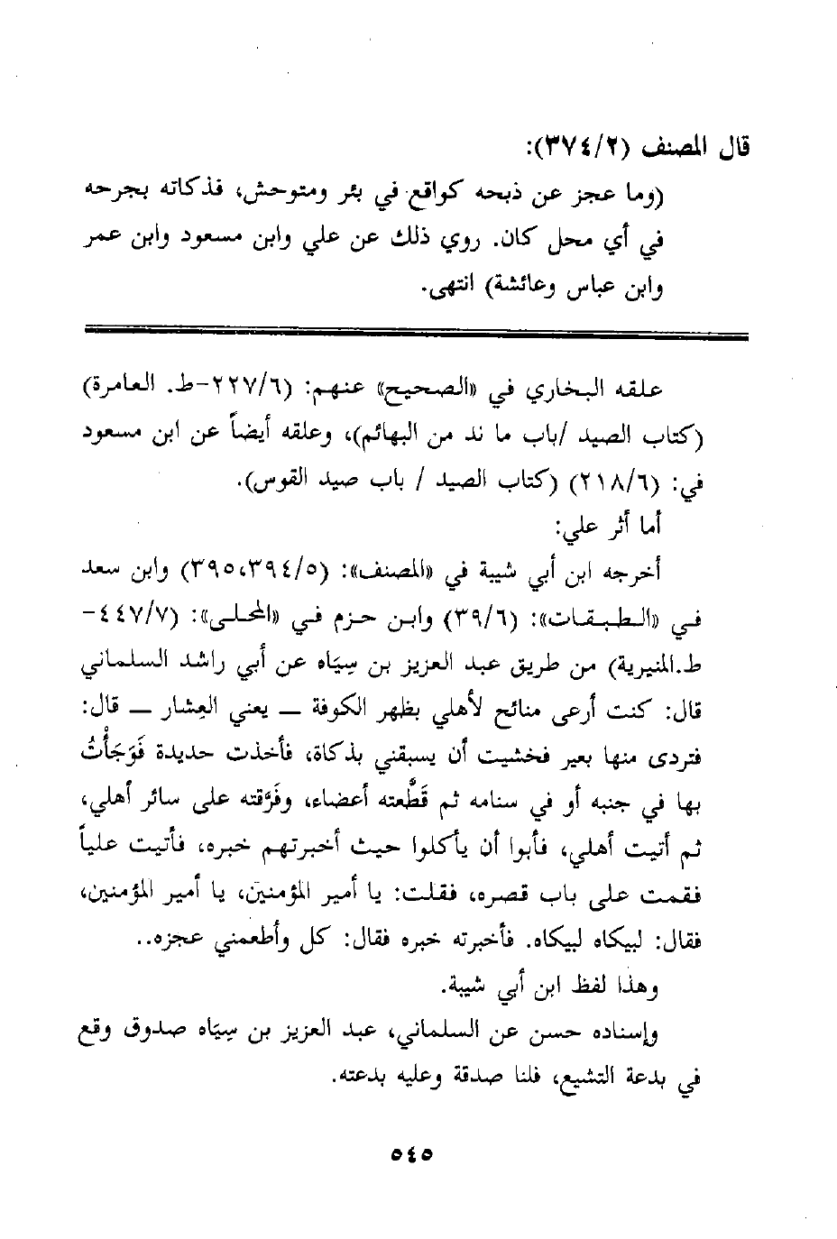 علقه البخاري في "الصحيح" عنهم: (6/227 - ط. العامرة) (كتاب الصيد /باب ما ند من البهائم) ، وعلقه أيضاً عن ابن مسعود في: (6/218) (كتاب الصيد / باب صيد القوس) .