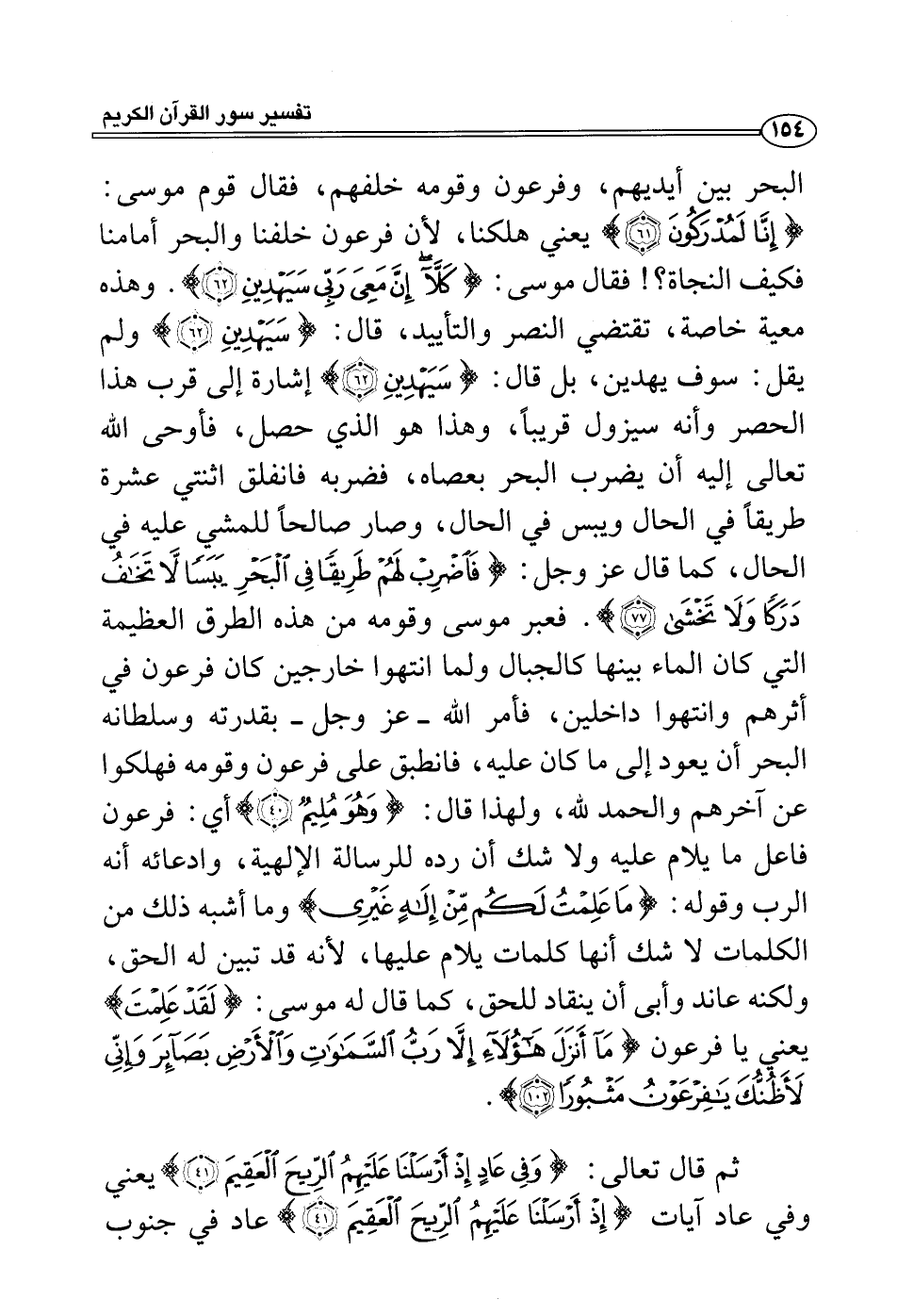 وهذه معية خاصة، تقتضي النصر والتأييد، قال: {سيهدين} ولم يقل: سوف يهدين، بل قال: {سيهدين} إشارة إلى قرب هذا الحصر وأنه سيزول قريباً، وهذا هو الذي حصل، فأوحى الله تعالى إليه أن يضرب البحر بعصاه، فضربه فانفلق اثنتي عشرة طريقاً في الحال ويبس في الحال، وصار صالحاً للمشي عليه في الحال، كما قال عز وجل: {فاضرب لهم طريقاً في البحر يبساً لا تخاف دركاً ولا تخشى} . فعبر موسى وقومه من هذه الطرق العظيمة التي كان الماء بينها كالجبال ولما انتهوا خارجين كان فرعون في أثرهم وانتهوا داخلين، فأمر الله - عز وجل - بقدرته وسلطانه البحر أن يعود إلى ما كان عليه، فانطبق على فرعون وقومه فهلكوا عن آخرهم والحمد لله، ولهذا قال: {وهو مليم} أي: فرعون فاعل ما يلام عليه ولا شك أن رده للرسالة الإلهية، وادعائه أنه الرب وقوله: {ما علمت لكم من إله غيرى} وما أشبه ذلك من الكلمات لا شك أنها كلمات يلام عليها، لأنه قد تبين له الحق، ولكنه عاند وأبى أن ينقاد للحق، كما قال له موسى: {لقد علمت} يعني يا فرعون {مآ أنزل هؤلآء إلا رب السماوت والأَرض بصآئر وإني لأَظنك يفرعون مثبورًا}