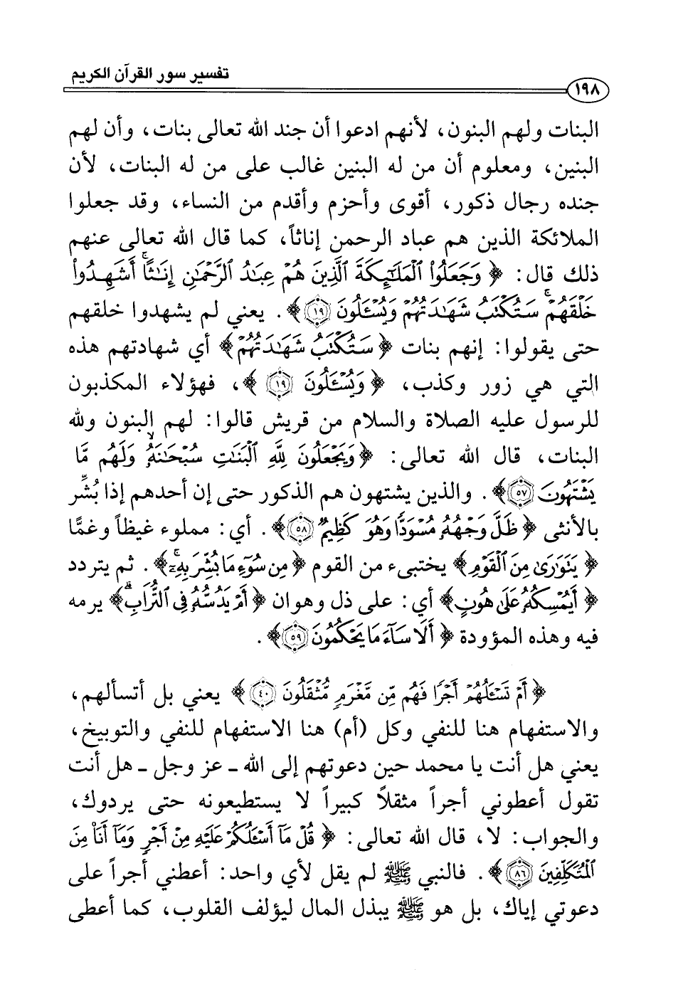 البنات ولهم البنون، لأنهم ادعوا أن جند الله تعالى بنات، وأن لهم البنين، ومعلوم أن من له البنين غالب على من له البنات، لأن جنده رجال ذكور، أقوى وأحزم وأقدم من النساء، وقد جعلوا الملائكة الذين هم عباد الرحمن إناثاً، كما قال الله تعالى عنهم ذلك قال: {وجعلوا الملائكة الذين هم عباد الرحمن إنثاً أشهدوا خلقهم ستكتب شهادتهم ويسئلون} .