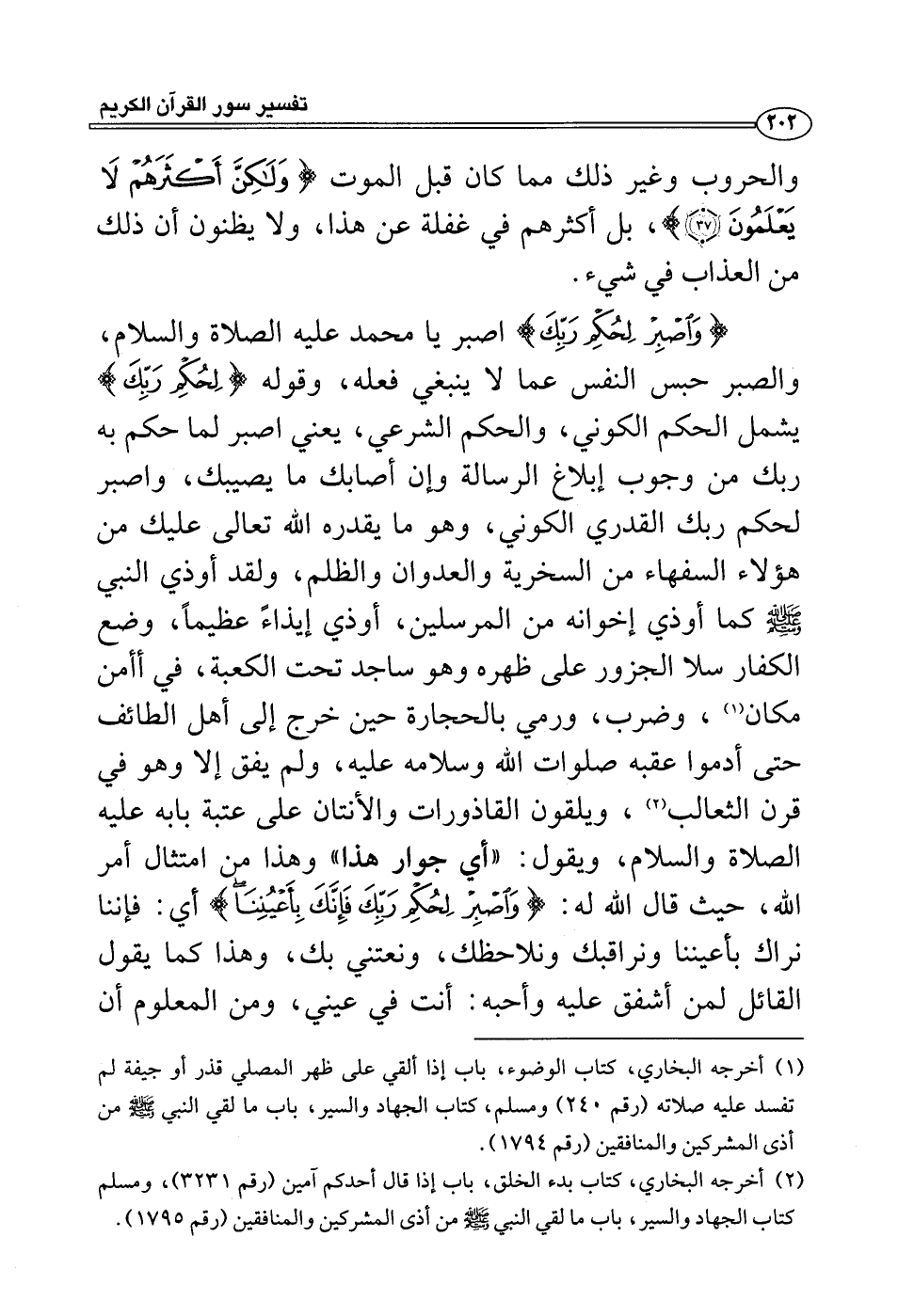 (¬1) أخرجه البخاري، كتاب الوضوء، باب إذا ألقي على ظهر المصلي قذر أو جيفة لم تفسد عليه صلاته (رقم 240) ومسلم، كتاب الجهاد والسير، باب ما لقي النبي صلى الله عليه وسلم من أذى المشركين والمنافقين (رقم 1794) .