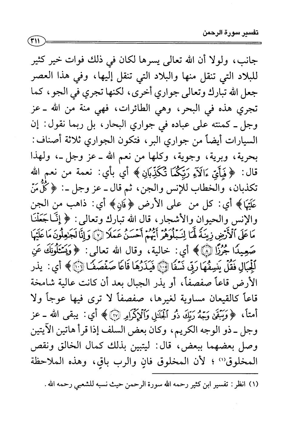 (¬1) انظر: تفسير ابن كثير رحمه الله سورة الرحمن حيث نسبه للشعبي رحمه الله..