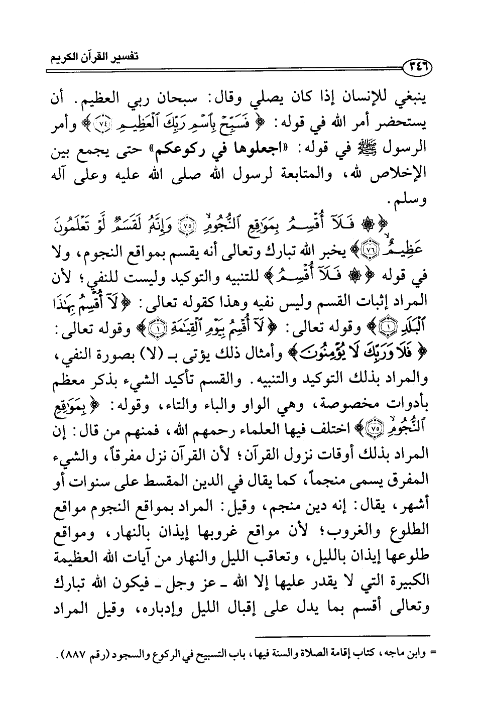 {فلا أقسم بمواقع النجوم وإنه لقسم لو تعلمون عظيم} يخبر الله تبارك وتعالى أنه يقسم بمواقع النجوم، ولا في قوله {فلا أقسم} للتنبيه والتوكيد وليست للنفي؛ لأن المراد إثبات القسم وليس نفيه وهذا كقوله تعالى: {لا أقسم بهذا البلد} وقوله تعالى: {لا أقسم بيوم القيامة} وقوله تعالى: {فلا وربك لا يؤمنون} وأمثال ذلك يؤتى بـ (لا) بصورة النفي، والمراد بذلك التوكيد والتنبيه. والقسم تأكيد الشيء بذكر معظم بأدوات مخصوصة، وهي الواو والباء والتاء، وقوله: {بمواقع النجوم} اختلف فيها العلماء رحمهم الله، فمنهم من قال: إن المراد بذلك أوقات نزول القرآن؛ لأن القرآن نزل مفرقاً، والشيء المفرق يسمى منجماً، كما يقال في الدين المقسط على سنوات أو أشهر، يقال: إنه دين منجم، وقيل: المراد بمواقع النجوم مواقع الطلوع والغروب؛ لأن مواقع غروبها إيذان بالنهار، ومواقع طلوعها إيذان بالليل، وتعاقب الليل والنهار من آيات الله العظيمة الكبيرة التي لا يقدر عليها إلا الله - عز وجل - فيكون الله تبارك وتعالى أقسم بما يدل على إقبال الليل وإدباره، وقيل المراد
