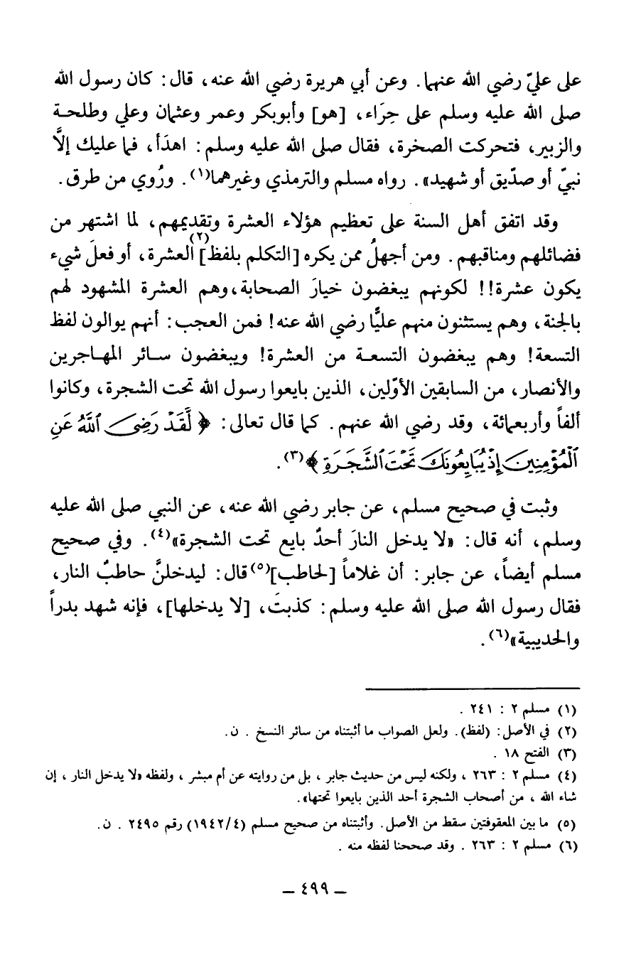 وَثَبَتَ فِي صَحِيحِ مُسْلِمٍ، عَنْ جَابِرٍ رَضِيَ اللَّهُ عَنْهُ، عَنِ النَّبِيِّ صَلَّى اللَّهُ عَلَيْهِ وَسَلَّمَ، أَنَّهُ قَالَ: «لَا يَدْخُلُ النَّارَ أَحَدٌ بَايَعَ تَحْتَ الشَّجَرَةِ» (¬4).