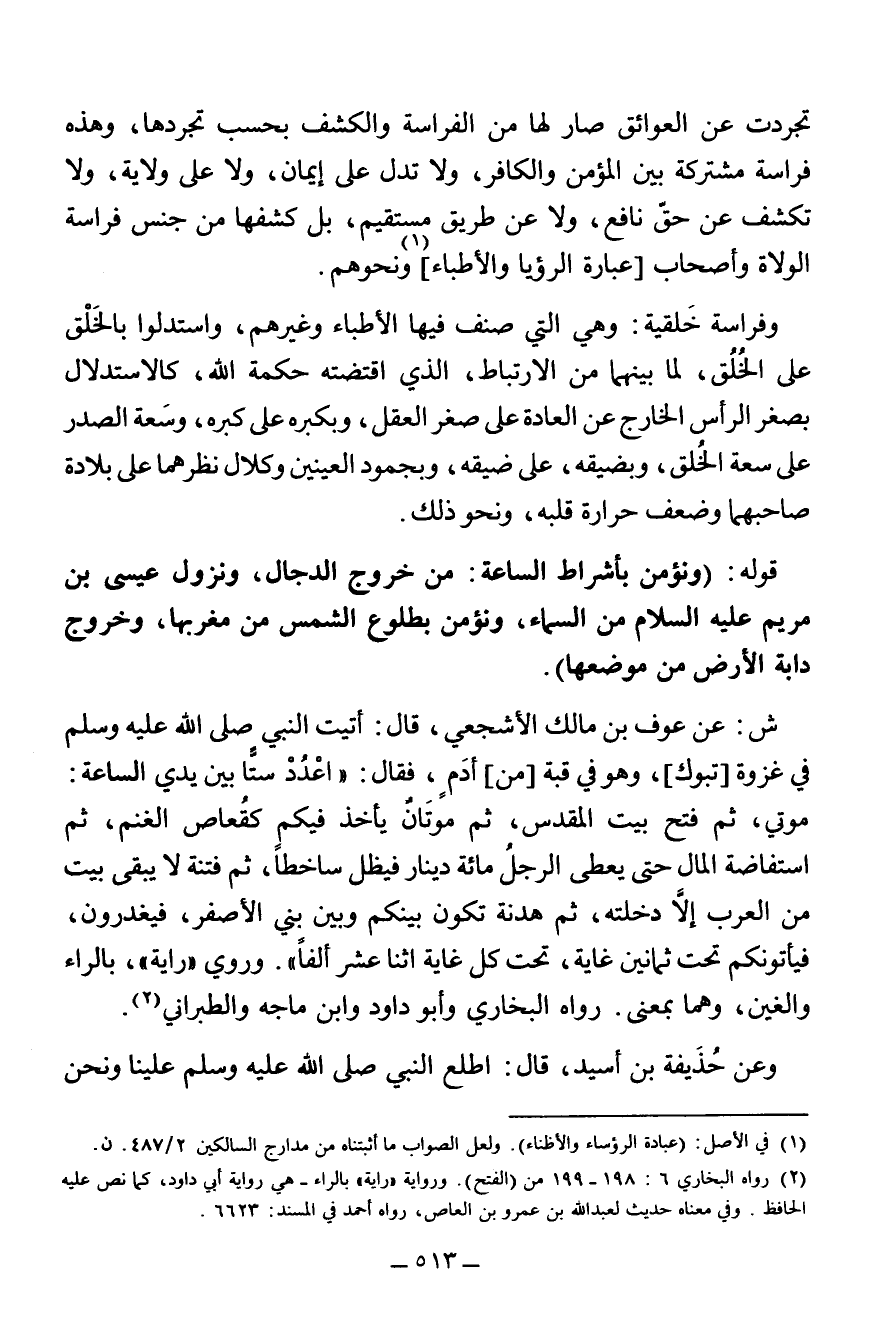 قَوْلُهُ: (وَنُؤْمِنُ بِأَشْرَاطِ السَّاعَةِ: مِنْ خُرُوجِ الدَّجَّالِ، وَنُزُولِ عِيسَى ابْنِ مَرْيَمَ عَلَيْهِ السَّلَامُ مِنَ السَّمَاءِ، وَنُؤْمِنُ بِطُلُوعِ الشَّمْسِ مِنْ مَغْرِبِهَا، وَخُرُوجِ دَابَّةِ الْأَرْضِ مِنْ مَوْضِعِهَا).