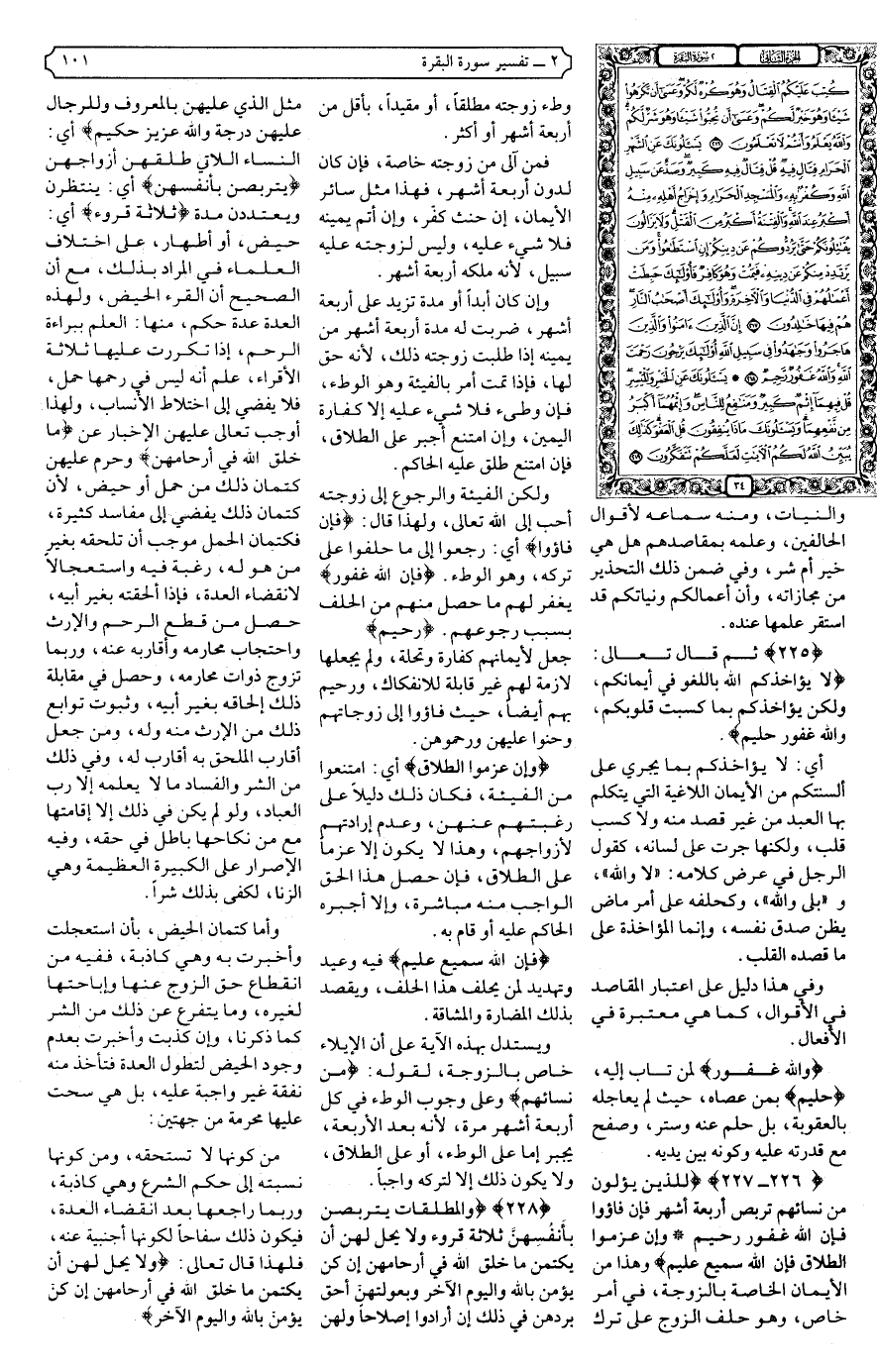 {226 - 227} {لِلَّذِينَ يُؤْلُونَ مِنْ نِسَائِهِمْ تَرَبُّصُ أَرْبَعَةِ أَشْهُرٍ فَإِنْ فَاءُوا فَإِنَّ اللَّهَ غَفُورٌ رَحِيمٌ * وَإِنْ عَزَمُوا الطَّلاقَ فَإِنَّ اللَّهَ سَمِيعٌ عَلِيمٌ} .