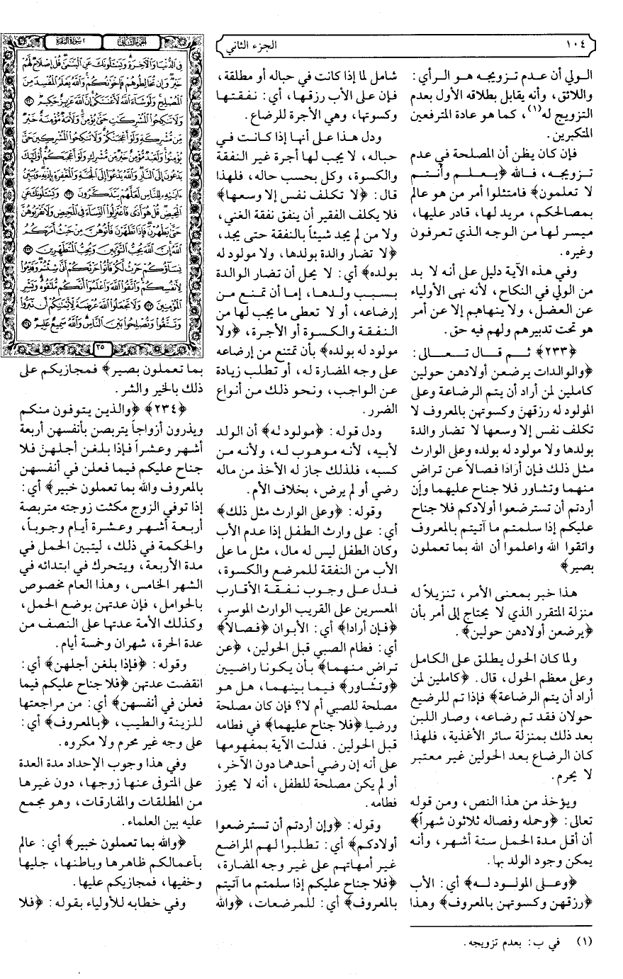 {233} {وَالْوَالِدَاتُ يُرْضِعْنَ أَوْلادَهُنَّ حَوْلَيْنِ كَامِلَيْنِ لِمَنْ أَرَادَ أَنْ يُتِمَّ الرَّضَاعَةَ وَعَلَى الْمَوْلُودِ لَهُ رِزْقُهُنَّ وَكِسْوَتُهُنَّ بِالْمَعْرُوفِ لا تُكَلَّفُ نَفْسٌ إِلا وُسْعَهَا لا تُضَارَّ وَالِدَةٌ بِوَلَدِهَا وَلا مَوْلُودٌ لَهُ بِوَلَدِهِ وَعَلَى الْوَارِثِ مِثْلُ ذَلِكَ فَإِنْ أَرَادَا فِصَالا عَنْ تَرَاضٍ مِنْهُمَا وَتَشَاوُرٍ فَلا جُنَاحَ عَلَيْهِمَا وَإِنْ أَرَدْتُمْ أَنْ تَسْتَرْضِعُوا أَوْلادَكُمْ فَلا جُنَاحَ عَلَيْكُمْ إِذَا سَلَّمْتُمْ مَا آتَيْتُمْ بِالْمَعْرُوفِ وَاتَّقُوا اللَّهَ وَاعْلَمُوا أَنَّ اللَّهَ بِمَا تَعْمَلُونَ بَصِيرٌ} .