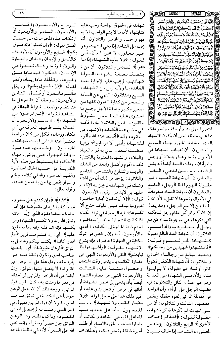{283} {وَإِنْ كُنْتُمْ عَلَى سَفَرٍ وَلَمْ تَجِدُوا كَاتِبًا فَرِهَانٌ مَقْبُوضَةٌ فَإِنْ أَمِنَ بَعْضُكُمْ بَعْضًا فَلْيُؤَدِّ الَّذِي اؤْتُمِنَ أَمَانَتَهُ وَلْيَتَّقِ اللَّهَ رَبَّهُ وَلا تَكْتُمُوا الشَّهَادَةَ وَمَنْ يَكْتُمْهَا فَإِنَّهُ آثِمٌ قَلْبُهُ وَاللَّهُ بِمَا تَعْمَلُونَ عَلِيمٌ} .