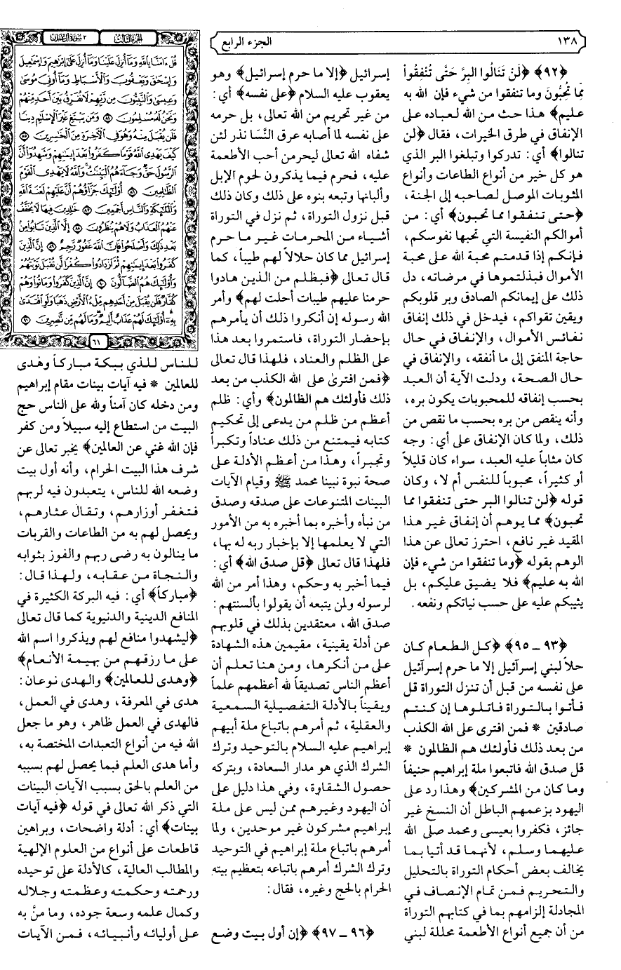 {96 - 97} {إِنَّ أَوَّلَ بَيْتٍ وُضِعَ لِلنَّاسِ لَلَّذِي بِبَكَّةَ مُبَارَكًا وَهُدًى لِلْعَالَمِينَ * فِيهِ آيَاتٌ بَيِّنَاتٌ مَقَامُ إِبْرَاهِيمَ وَمَنْ دَخَلَهُ كَانَ آمِنًا وَلِلَّهِ عَلَى النَّاسِ حِجُّ الْبَيْتِ مَنِ اسْتَطَاعَ إِلَيْهِ سَبِيلا وَمَنْ كَفَرَ فَإِنَّ اللَّهَ غَنِيٌّ عَنِ الْعَالَمِينَ} .