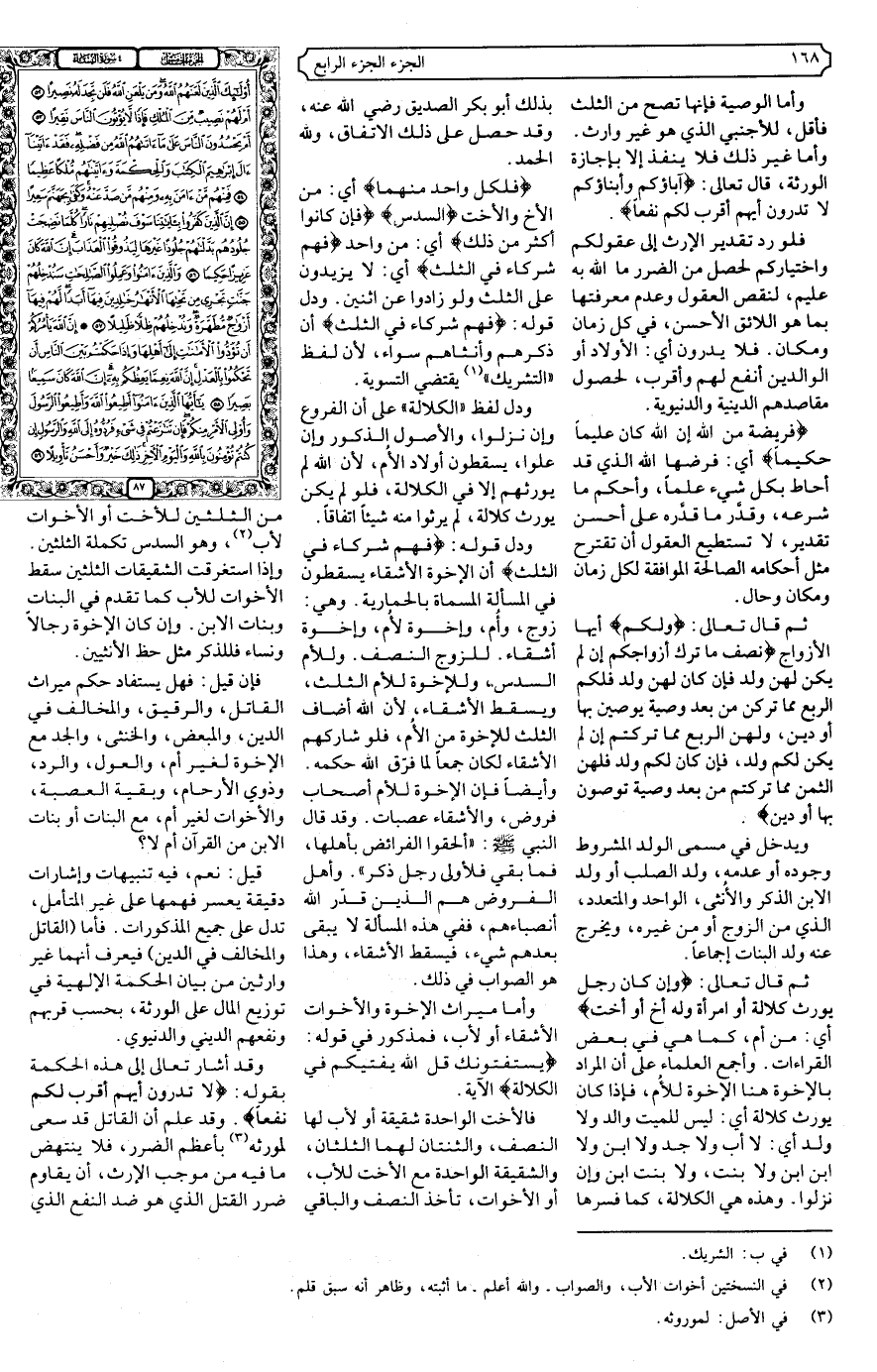 وأما مسائل (العول) فإنه يستفاد حكمها من القرآن، وذلك أن الله تعالى قد فرض وقدر لأهل المواريث أنصباء، -[170]- وهم بين حالتين: