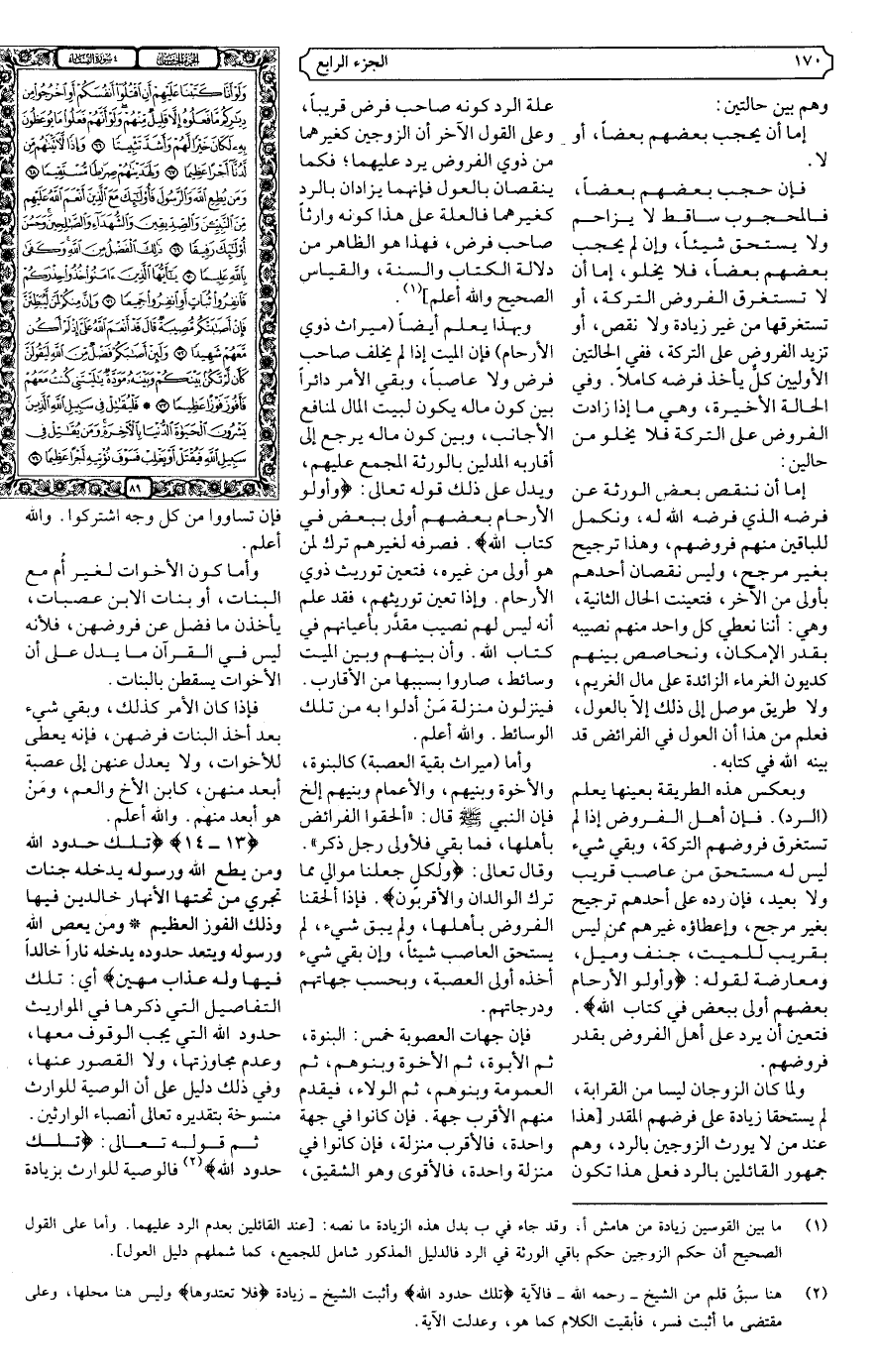 {13، 14} {تِلْكَ حُدُودُ اللَّهِ وَمَنْ يُطِعِ اللَّهَ وَرَسُولَهُ يُدْخِلْهُ جَنَّاتٍ تَجْرِي مِنْ تَحْتِهَا الأنْهَارُ خَالِدِينَ فِيهَا وَذَلِكَ الْفَوْزُ الْعَظِيمُ * وَمَنْ يَعْصِ اللَّهَ وَرَسُولَهُ وَيَتَعَدَّ حُدُودَهُ يُدْخِلْهُ نَارًا خَالِدًا فِيهَا وَلَهُ عَذَابٌ مُهِينٌ} .