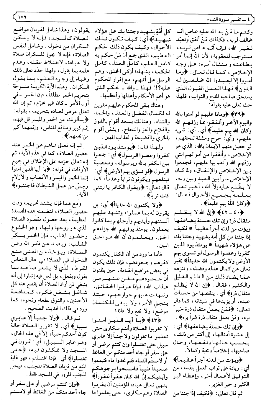 {43} {يَا أَيُّهَا الَّذِينَ آمَنُوا لا تَقْرَبُوا الصَّلاةَ وَأَنْتُمْ سُكَارَى حَتَّى تَعْلَمُوا مَا تَقُولُونَ وَلا جُنُبًا إِلا عَابِرِي سَبِيلٍ حَتَّى تَغْتَسِلُوا وَإِنْ كُنْتُمْ مَرْضَى أَوْ عَلَى سَفَرٍ أَوْ جَاءَ أَحَدٌ مِنْكُمْ مِنَ الْغَائِطِ أَوْ لامَسْتُمُ النِّسَاءَ فَلَمْ تَجِدُوا مَاءً فَتَيَمَّمُوا صَعِيدًا طَيِّبًا فَامْسَحُوا بِوُجُوهِكُمْ وَأَيْدِيكُمْ إِنَّ اللَّهَ كَانَ عَفُوًّا غَفُورًا} .