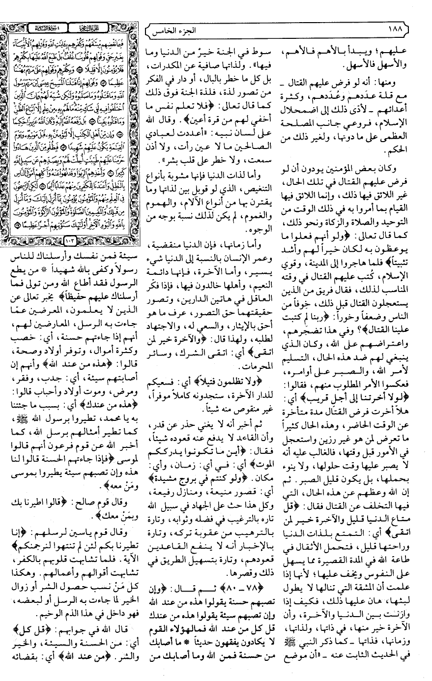 {78، 79} ثم قال: {.... وَإِنْ تُصِبْهُمْ حَسَنَةٌ يَقُولُوا هَذِهِ مِنْ عِنْدِ اللَّهِ وَإِنْ تُصِبْهُمْ سَيِّئَةٌ يَقُولُوا هَذِهِ مِنْ عِنْدِكَ قُلْ كُلٌّ مِنْ عِنْدِ اللَّهِ فَمَالِ هَؤُلاءِ الْقَوْمِ لا يَكَادُونَ يَفْقَهُونَ حَدِيثًا * مَا أَصَابَكَ مِنْ حَسَنَةٍ فَمِنَ اللَّهِ وَمَا أَصَابَكَ مِنْ سَيِّئَةٍ فَمِنْ نَفْسِكَ وَأَرْسَلْنَاكَ لِلنَّاسِ رَسُولا وَكَفَى بِاللَّهِ شَهِيدًا} .