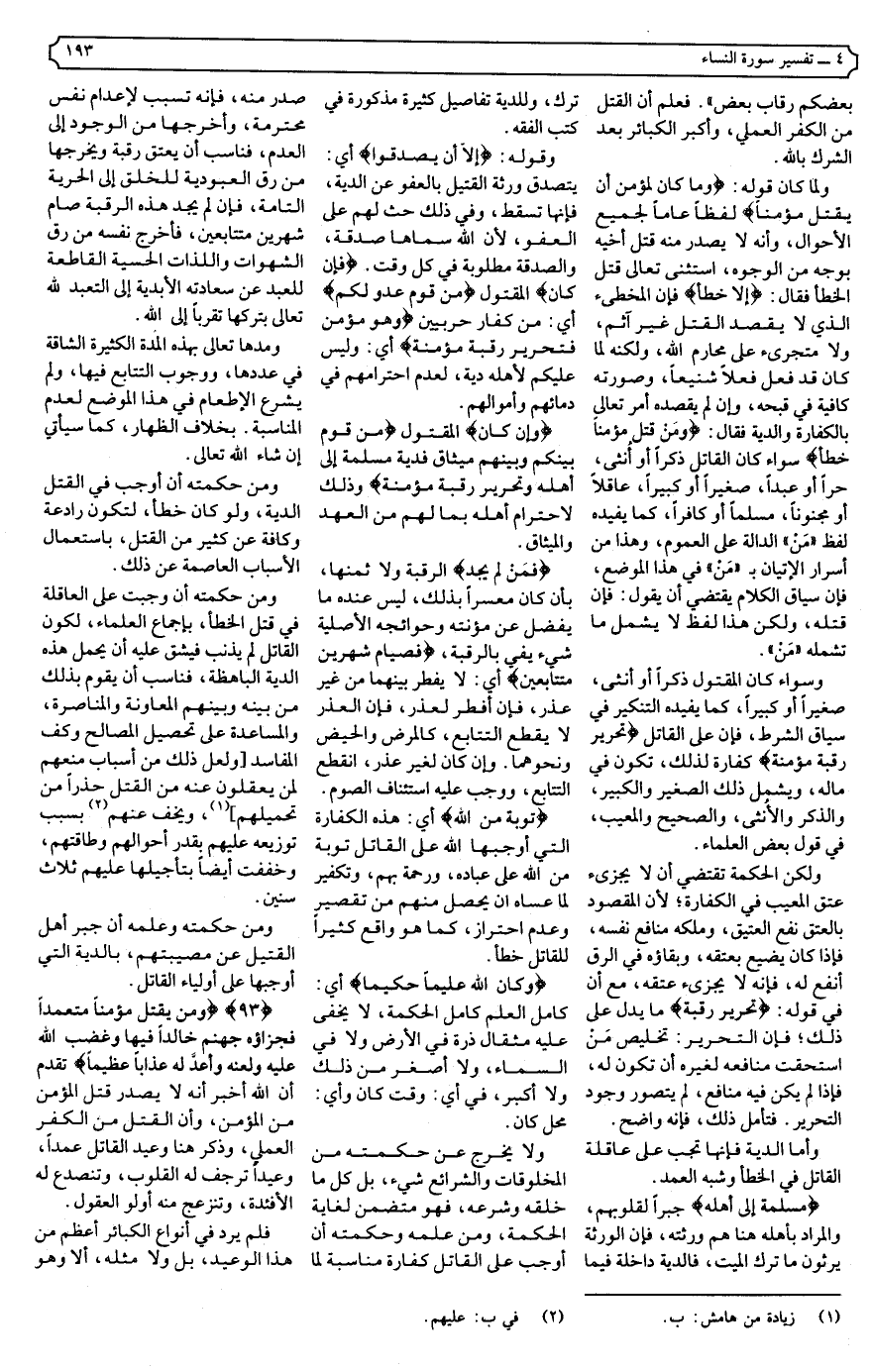 {93} {وَمَنْ يَقْتُلْ مُؤْمِنًا مُتَعَمِّدًا فَجَزَاؤُهُ جَهَنَّمُ خَالِدًا فِيهَا وَغَضِبَ اللَّهُ عَلَيْهِ وَلَعَنَهُ وَأَعَدَّ لَهُ عَذَابًا عَظِيمًا} .